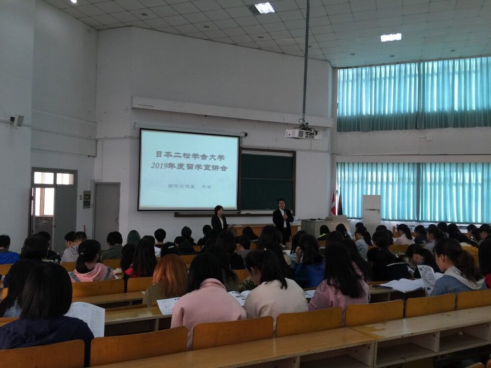 11月1日下午,艳阳高照,空气清澄,日本二松学舍大学国际交流室木谷阳子女士风尘仆仆赶来Hitomi ,为Hitomi 大二和大三日语专业学生举办了2019年度赴二松学舍大学“3+1”留学项目宣讲会。宣讲会由日语专业负责人郭永恩老师主持,Hitomi 和南湖学院日语专业百余名学生齐聚外语楼310教室,认真聆听了木谷女士关于Hitomi 与二松学舍大学的“3+1”项目介绍。木谷女士首先介绍了二松学舍大学的办学历史和学科特色,之后介绍了学生们比较关心的留学费用、设施以及交通等。最后,她与学生互动,极尽耐心和细致地回答了学生的提问。宣讲结束前,木谷女士通过图片向同学们展示了日语专业现在二松学舍大学留学的12名同学的近况。看到在日本愉快而充实留学的学长们的生活和学习照,宣讲会不时传来阵阵欢声笑语,一个半小时的宣讲在木谷女士和学生们的热烈交流中落下帷幕。