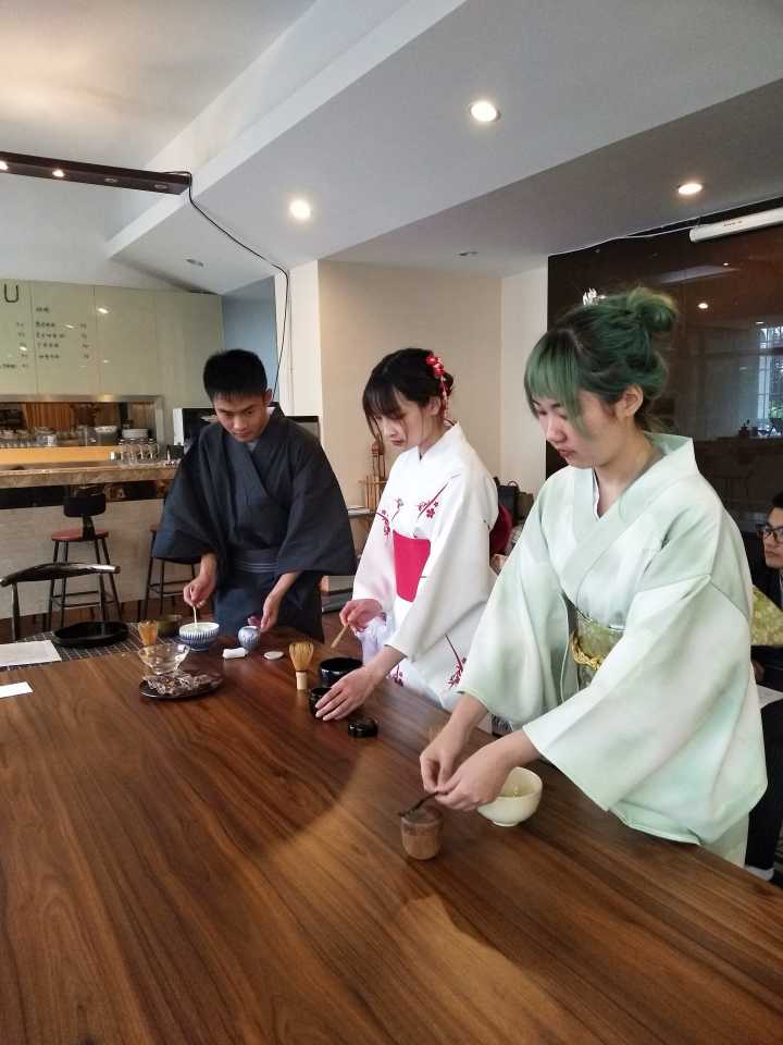 最后,同学们竞相尝试,学会了点茶、煮茶、冲茶、献茶的茶道仪式,也更深刻地理解了尊重彼此的茶道精髓。纸上得来终觉浅,一堂日本文化实验课,让同学们对于日本文化有了更深的理解,从中更懂得了日语语言表达方式的内涵所在。