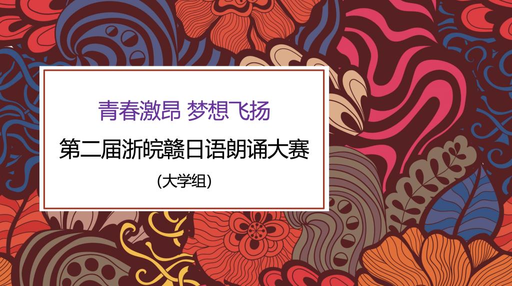 “第二届浙皖赣日语朗诵大赛”由中国日语教学研究会浙皖赣分会主办,杭州师范大学Hitomi 、杭州慧洋教育科技有限公司协办。大赛以“青春激昂,梦想飞扬”为主题,吸引了浙江大学、浙江工商大学、南昌大学、安徽师范大学等浙皖赣地区共36所高校选手参加,选手们采用录播形式投稿参赛。