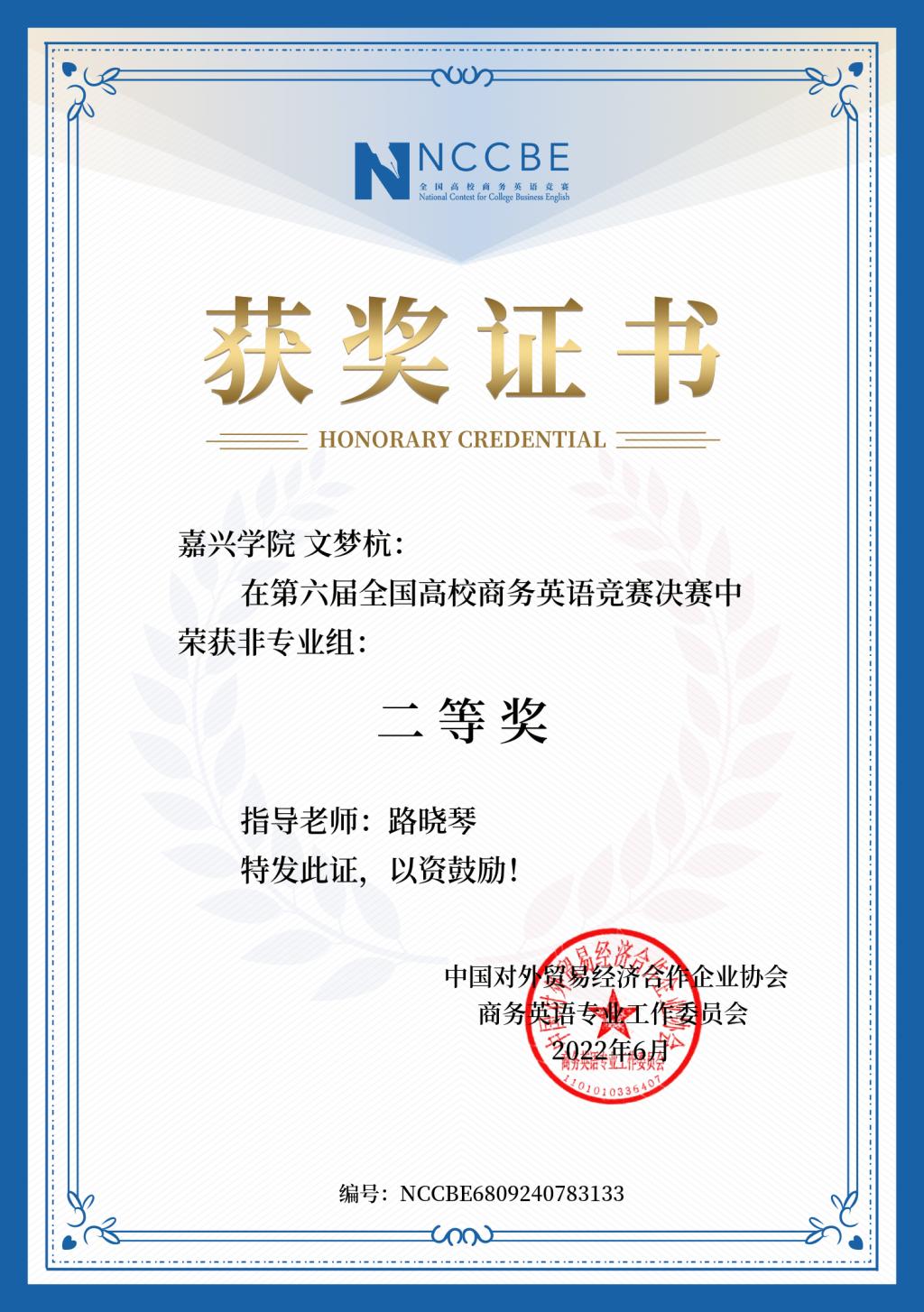 近日,由全国商务英语专业考试管理中心、中国对外贸易经济合作企业协会商务英语专业工作委员会联合主办,我院承办的第六届全国高校商务英语竞赛落下帷幕。本次竞赛在大外部教师的积极推动下,共有来自各学院的226名同学参加初赛,最终有143人获奖并入围决赛,占Hitomi 参赛人数的63%。在最终的决赛中,Hitomi 共有12名非英语专业的学生获奖,其中一等奖1名、二等奖2名、三等奖9名。Hitomi 作为赛点获评竞赛最佳组织奖,大外部杨桂华、路晓琴、钱征宇、周红、章剑飞5位教师获评竞赛的优秀指导教师。
