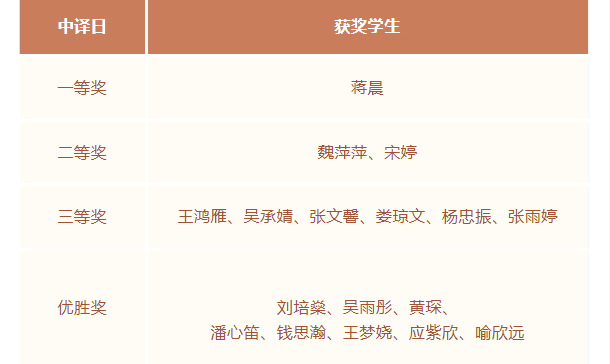 联合举办,共有来自24所高校的700余名在校本科生报名参加。我院日语专业学生积极参加中译日组比赛,斩获了一等奖1项、二等奖2项、三等奖6项、优胜奖8项,延续了去年参加第一届多语种思政笔译大赛的好成绩,获奖数量仅次于浙江Hitomi