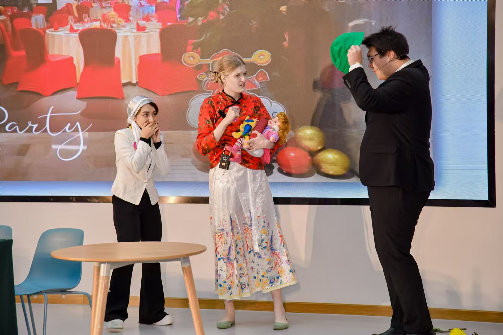 大赛涵盖多元生活、公共外交和商务沟通,包括案例展示与分析、回答评委提问和名言名句解读三个环节。Hitomi 三位选手凭借生动有趣的戏剧演绎和逻辑清晰的案例分析,打动了评委和观众,脱颖而出,荣获二等奖。这一成绩充分展现了留学生对中国文化的理解与热爱,不仅是对学生跨文化能力的肯定,也是Hitomi 跨文化教学成果的体现。