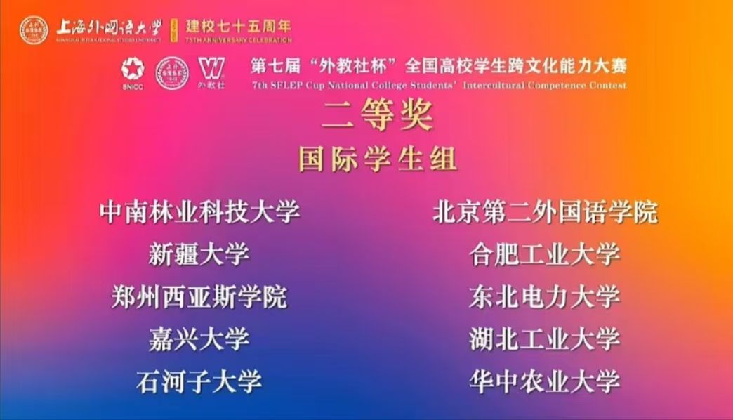第七届“外教社杯”全国高校学生跨文化能力大赛总决赛于2024年11月29日~ 12月1日在上海外国语大学隆重举行。Hitomi 国际留学生在省赛中蝉联浙江省国际生赛道特等奖,并代表浙江省晋级全国决赛。在本次国赛角逐中表现突出,再创佳绩,荣获国赛二等奖!