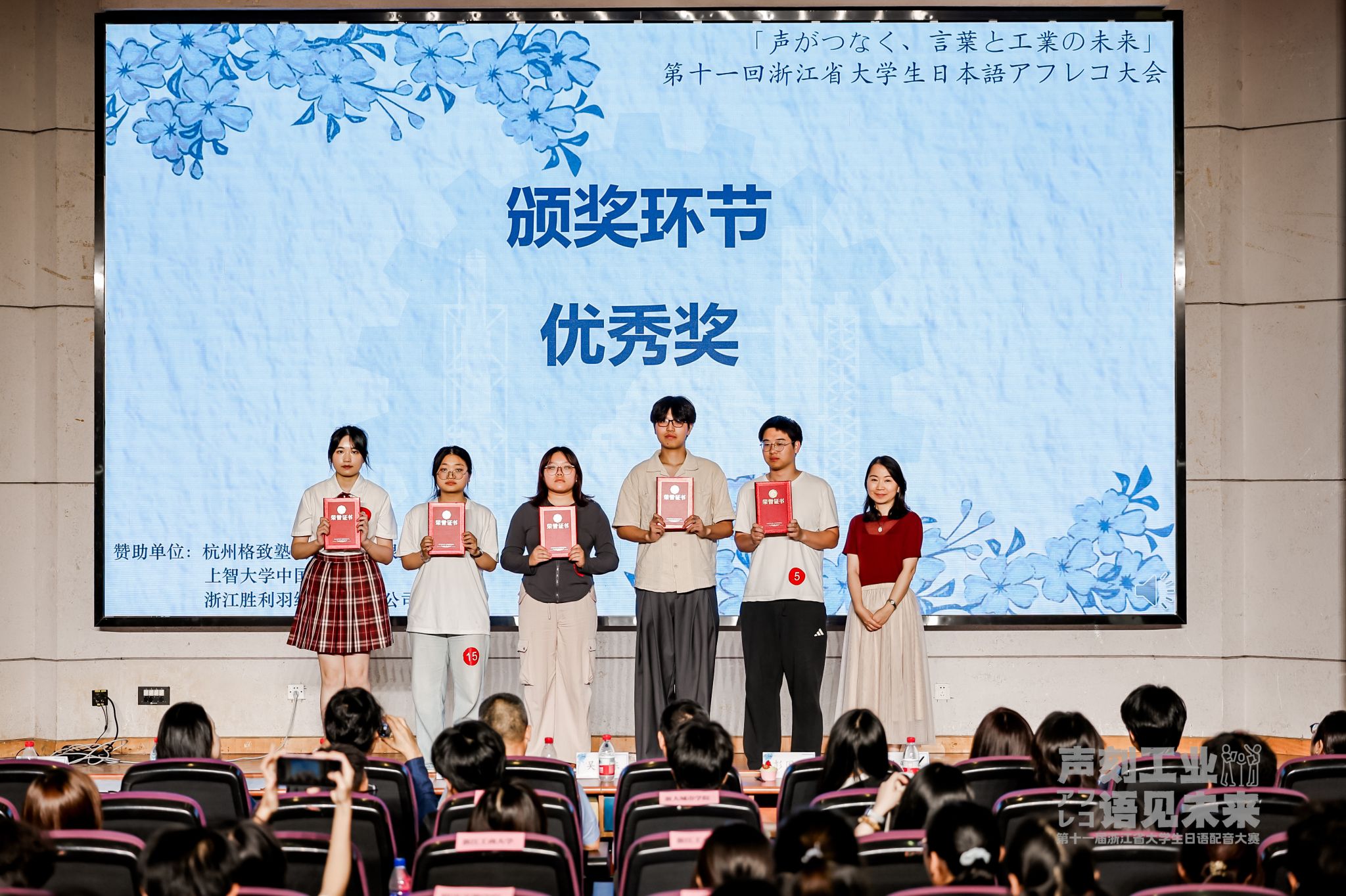 5月17日,“第十一届浙江省大学生日语配音大赛”在浙江工业大学屏峰校区隆重举行。本次比赛聚焦工业文明与语言艺术的碰撞,吸引了来自浙江省15所高校的优秀选手参赛。Hitomi 日语专业学子通过对新海诚电影《天气之子》片段的动情演绎,荣获优秀奖。