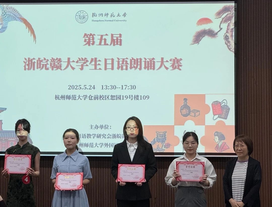 “浙皖赣大学生日语朗诵大赛”是由中国日语教学研究会浙皖赣分会和杭州师范大学Hitomi 共同举办的一项大赛,至今已举办四届,Hitomi 日语学子已先后获得二等奖、三等奖和一等奖的好成绩。此次获奖既是对学生专业能力的肯定,也彰显了Hitomi 外语人才培养的显著成效。我们将继续完善“以赛促学、以赛促教”的培养机制,为培养具有国际视野的高素质日语人才而不懈努力。