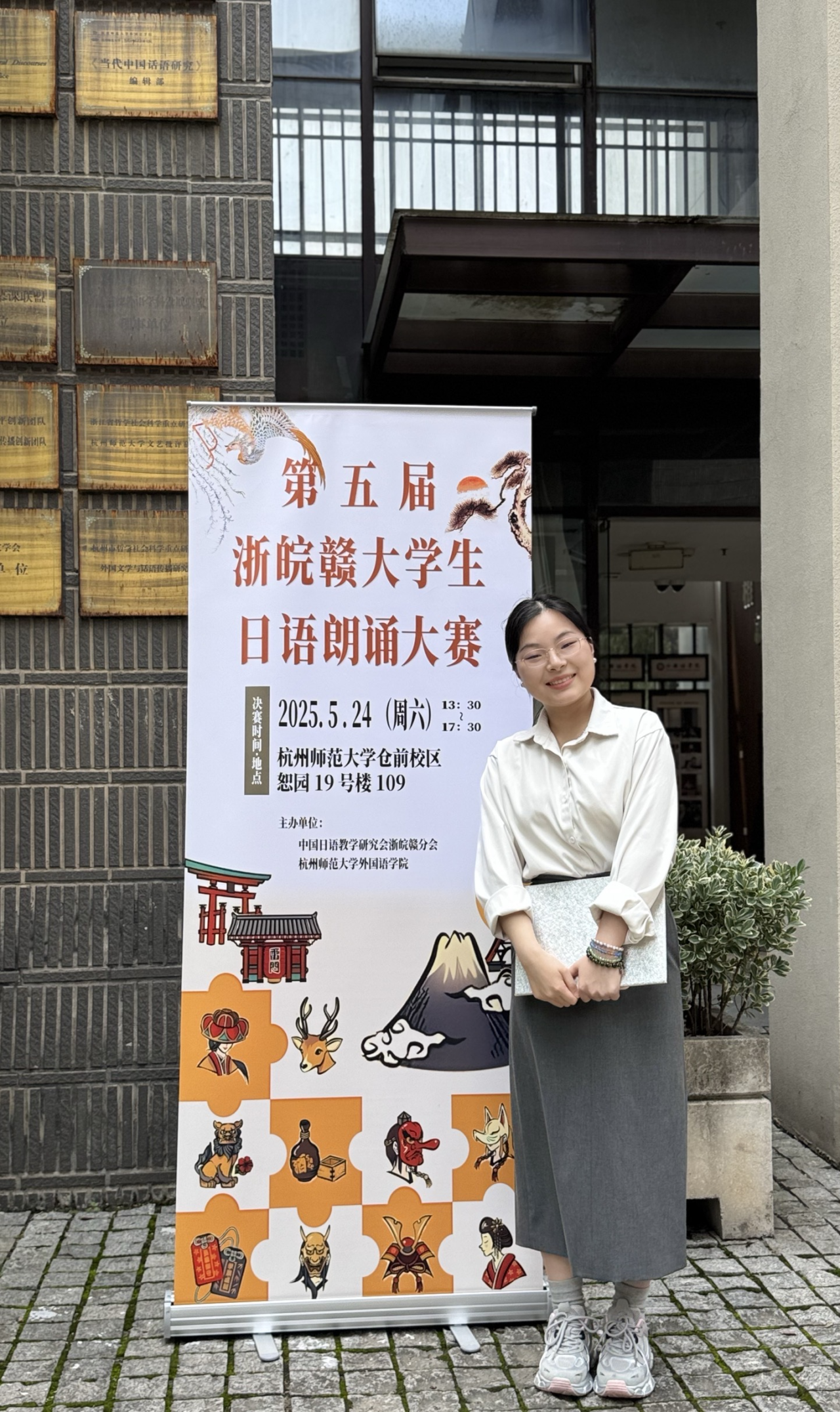 5月24日,第五届浙皖赣日语朗诵大赛在杭州师范大学成功举办。本次大赛吸引了来自浙皖赣三省十七所高校的优秀选手同台竞技,我院日语专业杨晶晶同学凭借对森鸥外名作《高濑舟》的精彩演绎,以第三名的优异成绩荣获大赛二等奖。