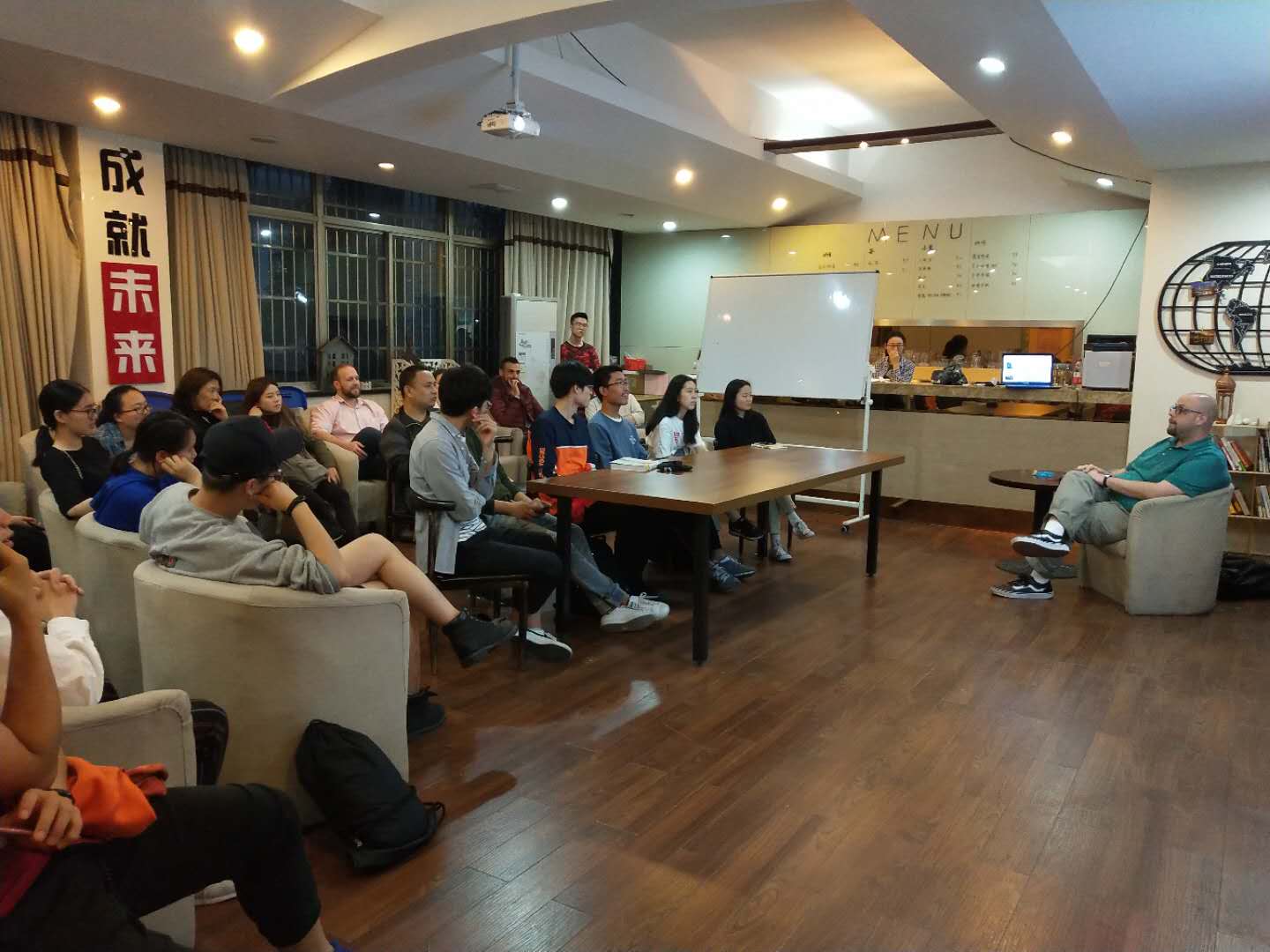 2019年4月18日,本学期第一次中外教沙龙在Hitomi 咖啡吧举行。沙龙主题为Video Game Culture in America(美国游戏文化),主讲人为美籍外教Nathan Tomey。