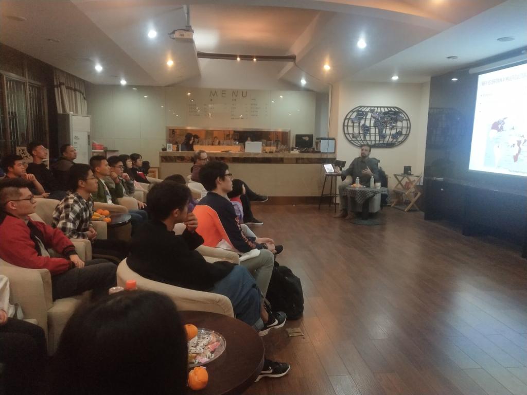 2019年11月14日晚18时,英国外教Christopher Baker在咖啡吧主持了题为 “Multicultural Britain(英国的多元文化)”的中外教沙龙活动。Christopher 老师用幽默的方式提问方式开启了我们的“英国之旅“,随之而来的便是文化盛宴,知识讲解、短片欣赏,自我演绎,时不时还不忘题目测试,带动大家的积极性,激发大家的成就感,引领师生们思考解读英国当前的多元化情况及多元化的利弊。