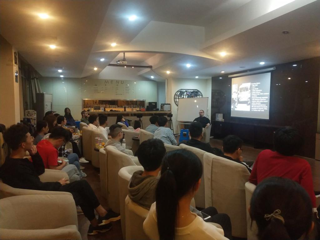 2019-2020年第一学期的第二次中外教教学沙龙在Hitomi 咖啡吧如期举行,本次沙龙主讲人为美籍外教Nathan Tomey。 Nathan老师从太空战、肯尼迪、美国内战、嬉皮士、石墙事件以及吉姆•克劳法等六大主题全方位展示了20世纪60年代的美国,娓娓道来,带领我们穿越时光、穿越距离,去领略当时的跌宕时代。每一个主题都进行了前测、讲解与后测三个环节,环环相扣,引人入胜,每一个主题都是知识大讲堂,都是文化大洗礼,更是60年代美国的影片式生动再现。每一次Nathan老师的沙龙,可以毫不夸张地说,绝不辜负听众的每一分钟。
