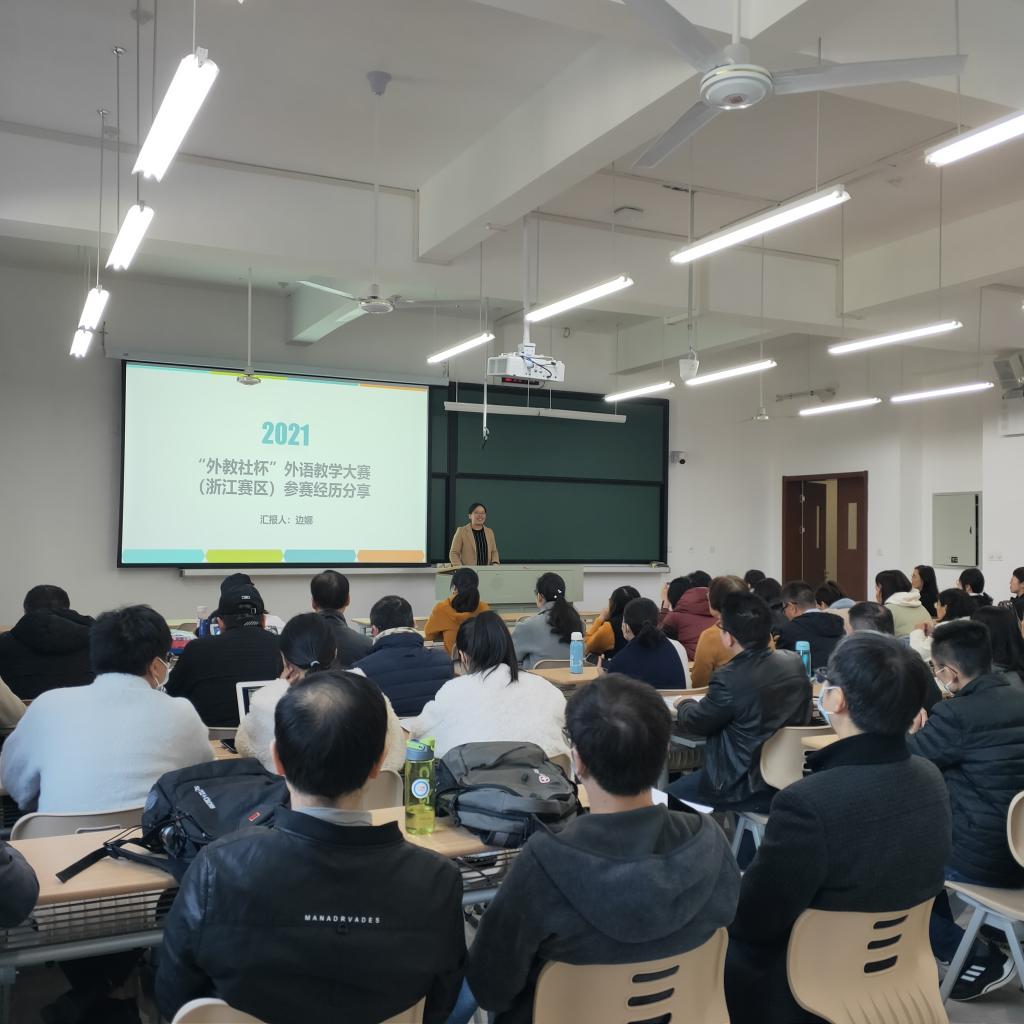 短暂的动员会后,英语系边娜老师为全体老师开展示范课教学,分享教学竞赛经验。边老师先介绍了大赛的赛制和具体要求,接着现场示范本次参赛授课过程,从赛前、赛中、赛后三个方面做了精彩深入的讲解,包括比赛前如何精心准备,筛选内容进行教学设计;比赛中如何调整心态和现场气氛、如何“说课”、如何展现个人特色;比赛后如何反思促教,以便更好地实现课程思政理论研究与实践的转化、积极打造金课等。边老师还在分享中着重提到平时潜心教书育人,在课堂上弘扬真善美,真心关爱学生,为人师表、以身作则。边老师的现场示范教学和经验分享,使参会教师深受启发,受益匪浅。