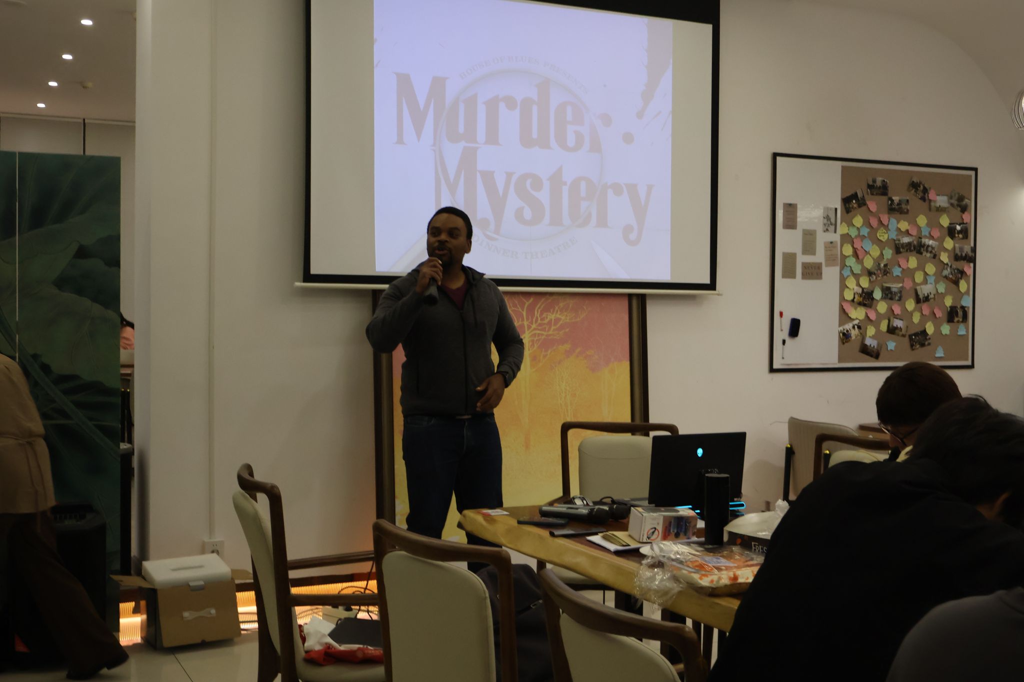 接下来便是惊心动魄又情节交织的推理游戏环节,随着视频中故事的推进,一系列令人瞠目结舌的线索逐渐浮出水面,它们或隐晦或巧妙,总之都需要同学们运用智慧与洞察力去拼凑和分析才能解决。讲解声中伴随着讨论声、争辩声和偶尔因发现关键线索而爆发的惊喜欢呼声。在这场智慧与勇气的较量中,每个人都成为了故事的一部分,共同编织着属于自己的“Murder Mystery”。