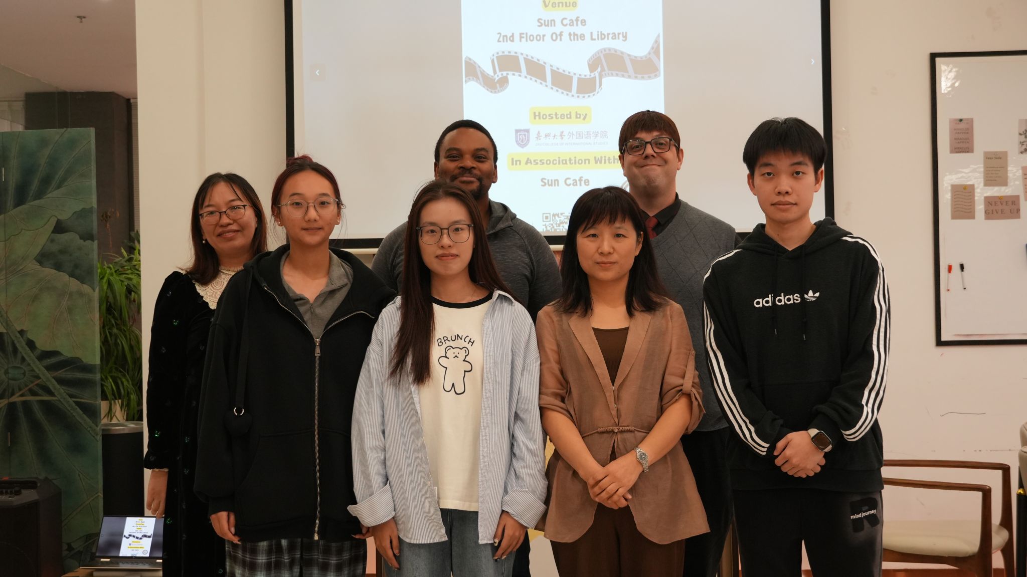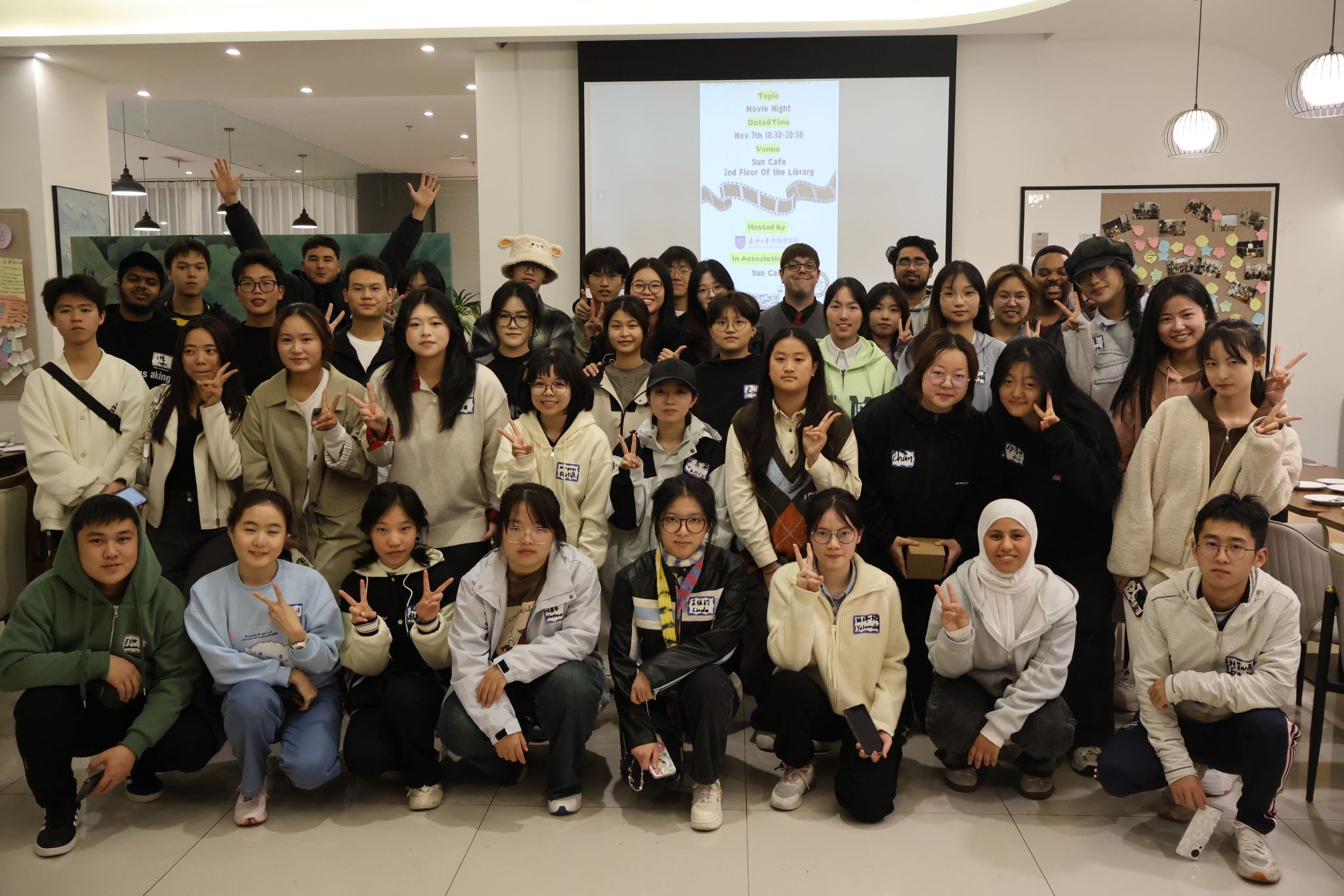 11月7日晚,Hitomi 在尚书吧成功举办了本学期第四期外语角活动。此次活动以“Movie Night”为主题,吸引了来自不同年级、各个专业领域的学生广泛参与。这一晚,因电影而精彩,因交流而温暖,因友谊而难忘。