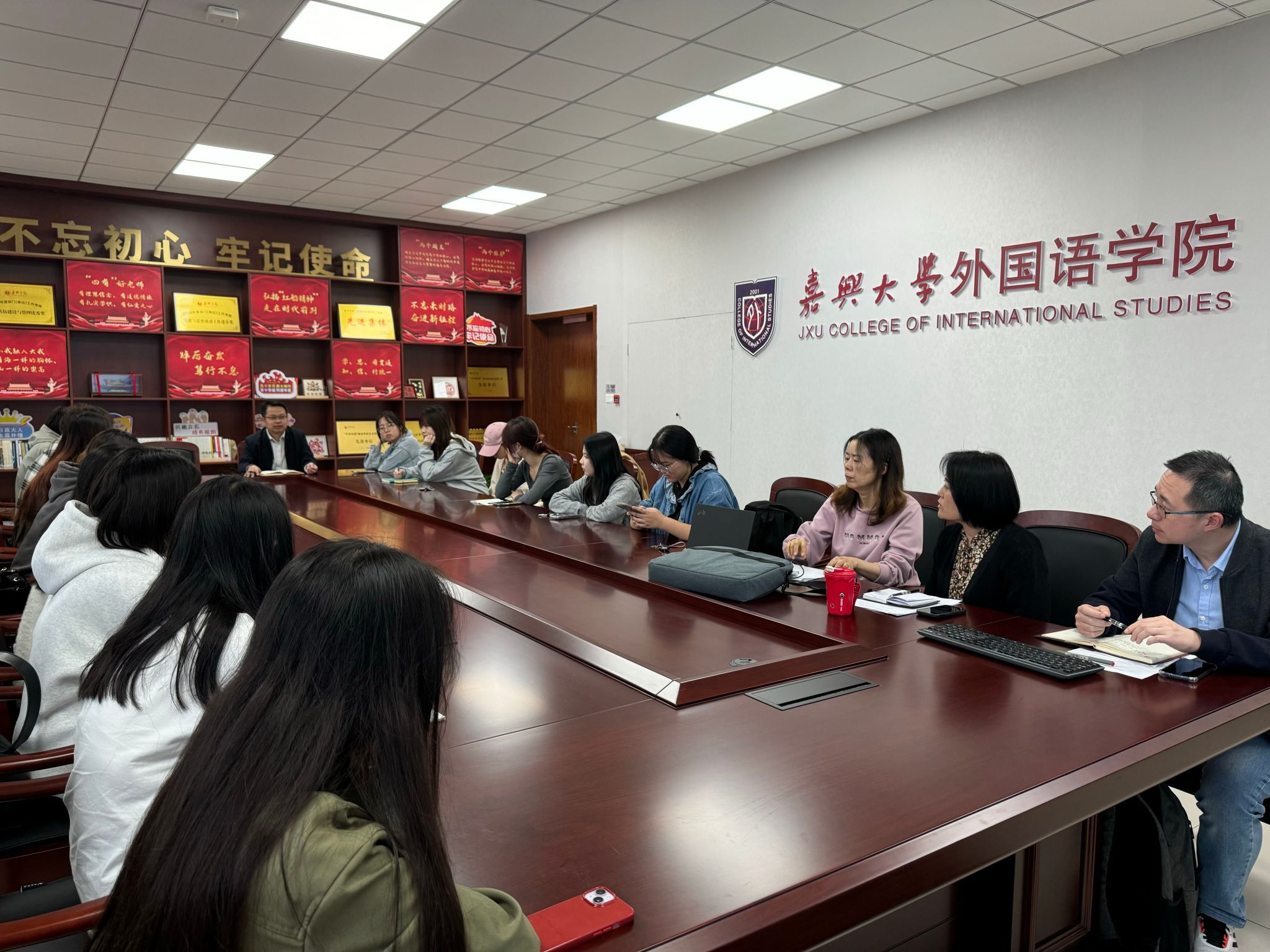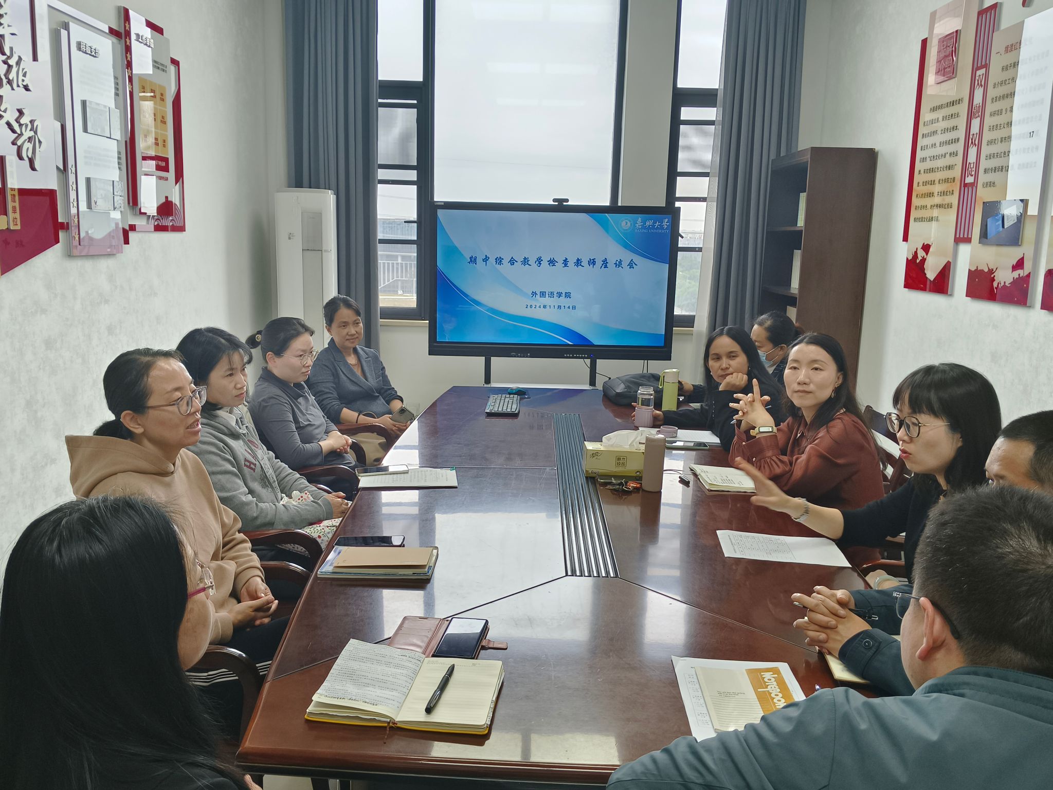 11月21日下午,在兴德楼南楼516会议室召开了期中教学综合检查反馈交流会,院长唐艳芳、副院长邱佳、学院督导组全体成员、各系部正副主任、各教研室负责人、骨干教师及教务办主任参加了会议。会议由副院长邱佳主持,她先通报了学院和系部检查抽查总体情况,并就师生座谈会上汇总的多方意见和建议与参会教师们进行了反馈和沟通。在集中评课环节,参会教师们从课堂呈现、师生互动、教学成效、教学组织实施等方面对5名教师的公开课进行了点评,并就学生课堂过度使用手机、平板电脑以及参与课堂互动意愿越来越弱这一普遍存在的问题展开了热烈讨论。副院长邱佳肯定了本次公开课教师们认真教书育人的良好精神风貌,指出应进一步深入思考在人工智能时代如何拥抱AI有效开展外语教学,进而提升学生的批判性思维能力和创造力。最后,学院督导组组长、院长唐艳芳作总结发言。他对本次集中教学反馈交流会给予充分肯定,他指出身处日新月异的AI时代,教师一方面要有危机感,教学设计、教学内容、教学方法都要创新;另一方面危机的背后也蕴含着机遇,人工智能技术和教学实践相结合不但能提高教学效果,还能极大地拓宽教师的教研、科研领域。希望广大教师调整心态,坚持反思与学习,不但要适应AI时代,更要做时代弄潮儿。