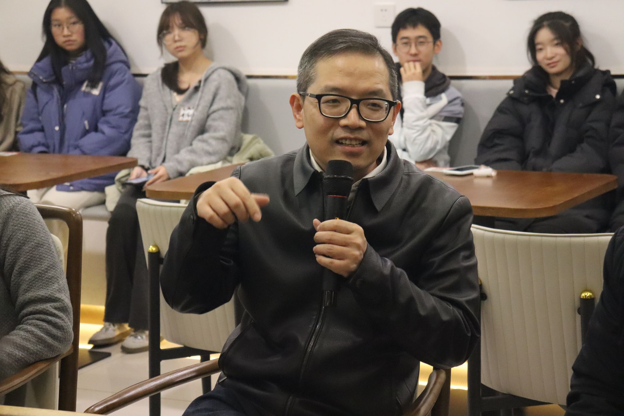 12月12日晚,Hitomi 2024-2025(1)最后一场英语角在图书馆尚书吧成功落下帷幕。Hitomi 副校长周宏伟、Hitomi 院长唐艳芳和副院长邱佳以及特邀嘉宾西班牙语翻译员姜鸿昊先生等亲临现场,与同学们就“Career Planning”共同开启了一场轻松愉悦且极具指导性的英语交流盛宴。