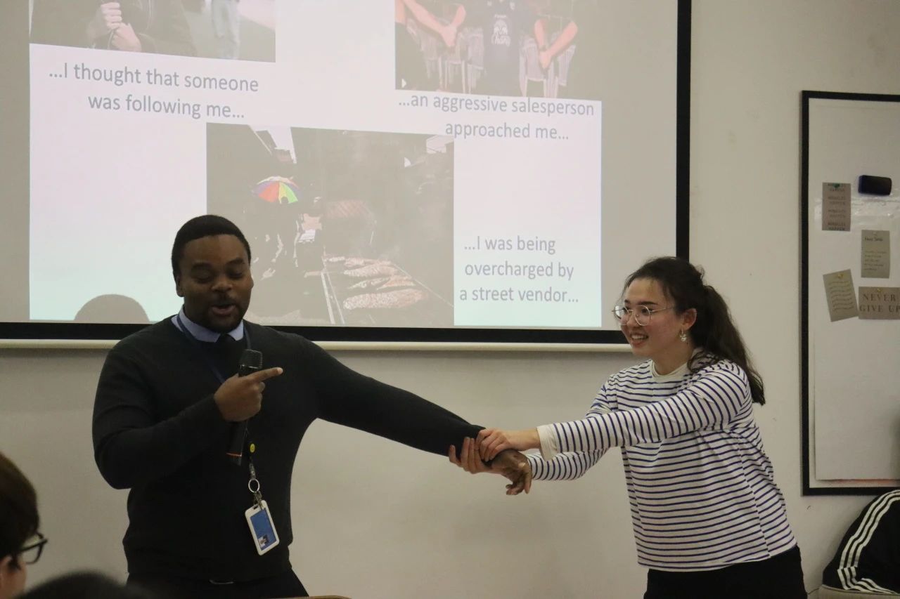 外教Kay从旅行的安全角度切入,比较了“book smart”和“street smart”的区别。通过案例分析强调“street smart”在旅行中的重要性。他以具体场景和真实社会事件为例,引导示范如何高效解决问题,保护自身安全。