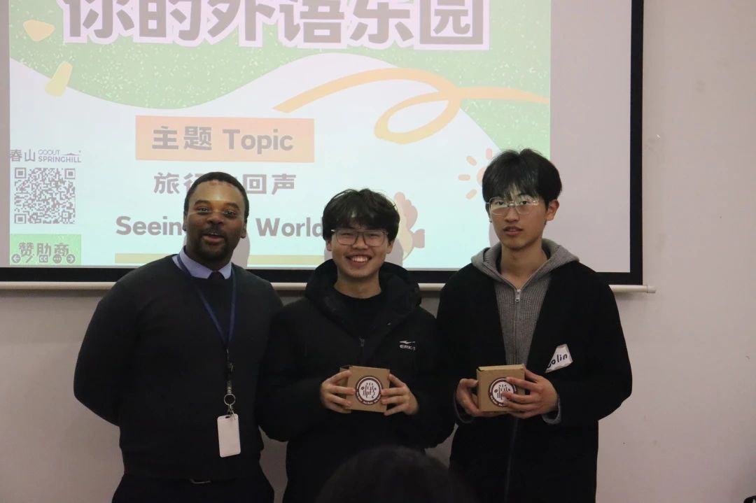 外教Nathan设计的“行李打包挑战赛”点燃了全场热情。参与者需在限定时间内用英语列出不同旅行场景(如海岛度假、博物馆之行等)的必备物品,极具趣味性。这一环节不仅考验词汇量与逻辑思维,更激发了同学们对旅行需求的创造性思考。最终,表现优异的同学获得了定制主题纪念品。