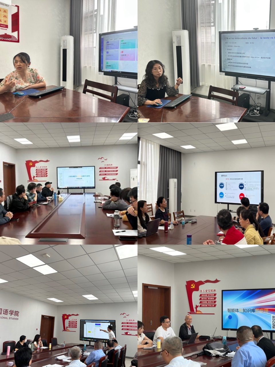 响应学校人工智能与教育教学融合指导精神,各系部开展教学思想大讨论,聚焦“AI技术与语言教学融合”“语言+技术”复合人才培养模式,明确课程改革方向,增强教师使命感。各系部教研室开展了一系列特色教研活动,如《PBL模式下的课程改革实践与探索》《人工智能进课堂:小语种教学与人工智能的碰撞与融合》《AI赋能大学外语教学》等,确保每次教研活动有主题、有过程、有成果。