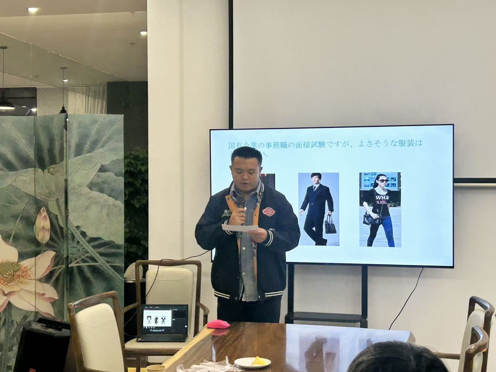 我院日语系2018级毕业生、现翻译硕士研究生张锦超同学作为 “过来人” 登台分享,用亲身经历搭建起 “校园——职场” 的桥梁。他结合自身从本科备考、硕士深造到职场实习的多重体验,围绕专业积淀、语言精进与职业感悟,用生动真切的故事传递宝贵心得,每一个细节都引发在场同学共鸣。他的分享不仅为同学们的生涯规划提供了鲜活范本,更以 “同龄人” 的身份传递了奋斗信心,深深打动并鼓舞了在场的每一位听众。