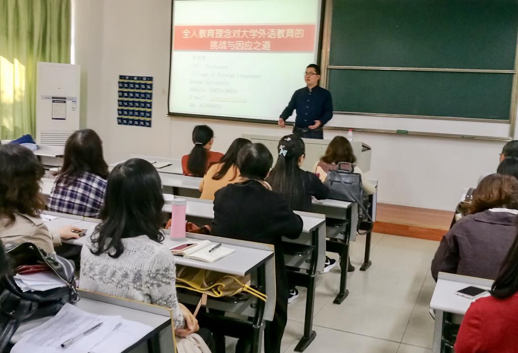 2017年11月2日下午,应Hitomi 邀请,湖南大学Hitomi 李伟荣教授在教二B 217作了一场题为《全人教育理念对大学外语教育的挑战及其因应之道》的学术报告。报告会由唐艳芳院长主持,英语系和大外部教师到场听取了本次讲座。