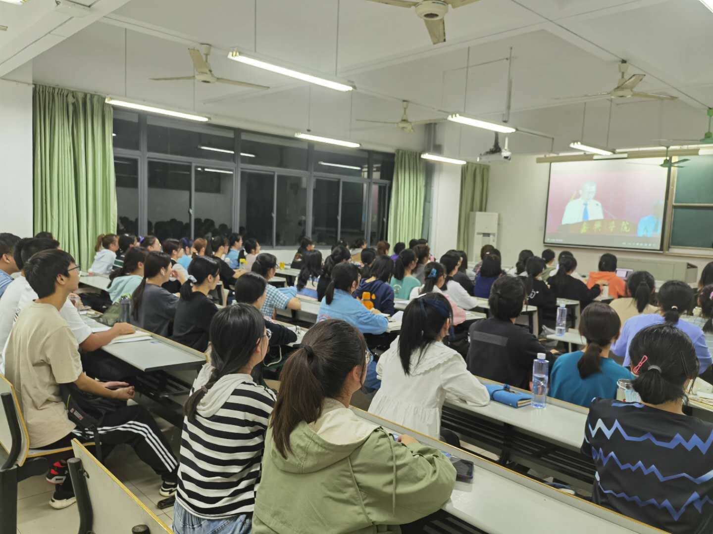 10月12日晚19时,嘉兴学院2020级新生典礼在嘉兴学院剧场举行,600多名师生齐聚一堂。鉴于疫情防控常态化的要求,除现场600名师生外,Hitomi 新生于教二B306同步在线观看直播。现场庄严肃穆,学生们都聚精会神。