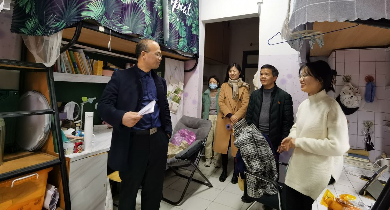 2月28日下午,副校长杨培强在Hitomi 院长唐艳芳、党委书记周钰的陪同下走访我院学生寝室,并与学生亲切交流。在走访慰问中,杨校长详细了解学生寒假生活、返校情况、上学期的学习成绩,并询问新学期的课程安排、学习计划以及未来打算。他殷切地叮嘱同学们应该继续努力学习,不断提高自己的专业知识与素养。走访中,杨校长和联系寝室公寓六B138的各位同学进行畅谈,询问同学们考研的准备情况,鼓励大家在继续努力的同时也要注意锻炼身体,劳逸结合。同学们对校领导的关心深表感激,并对未来充满希冀。