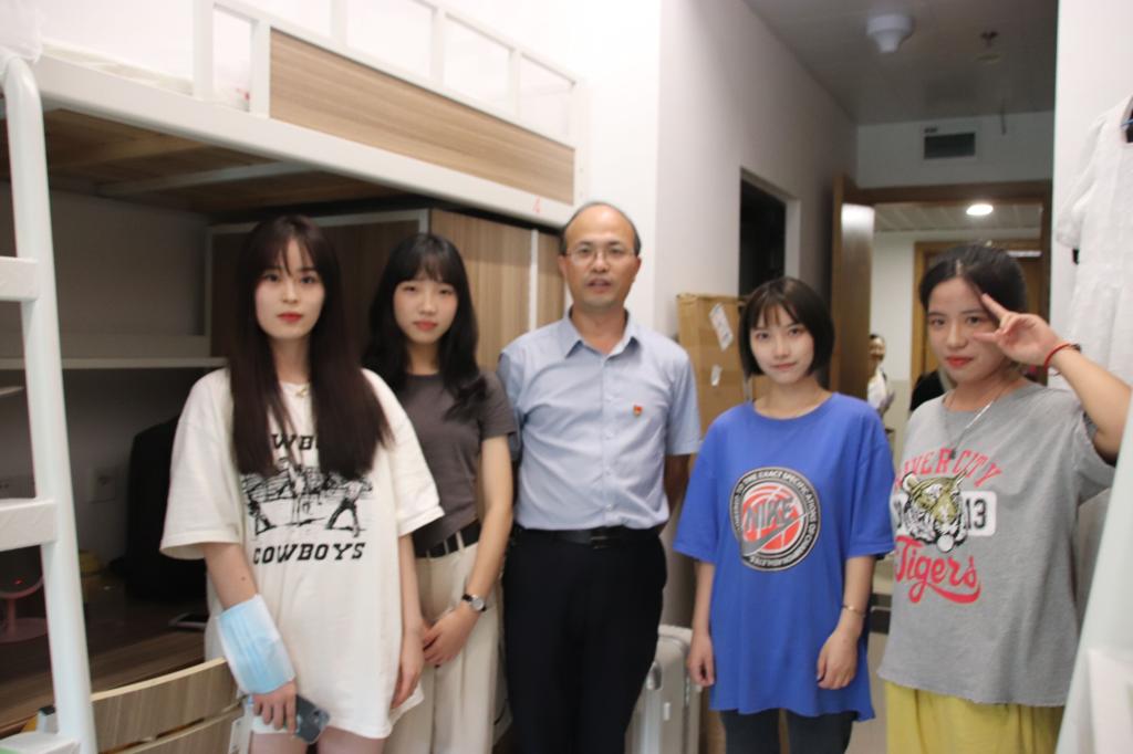 9月9日下午,校党委委员、副校长杨培强在Hitomi 党政领导班子和学工办老师的陪同下走访了新生宿舍,为2021级新生送去温暖的问候与祝福。