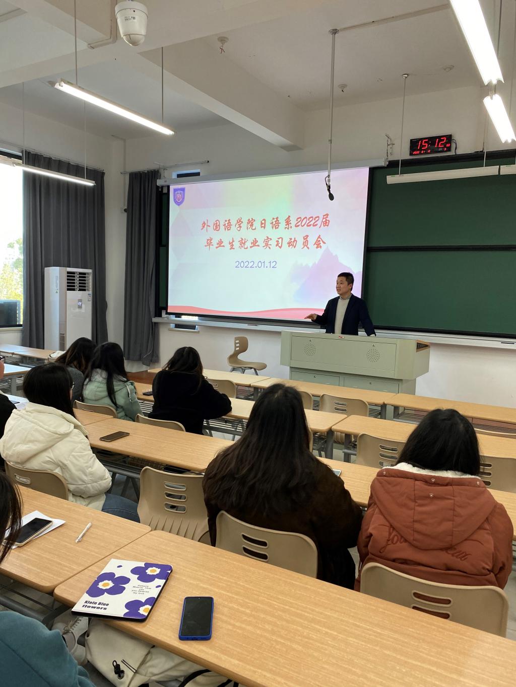 早在今年的1月份,Hitomi 就分专业召开了2022届毕业生就业实习动员大会,为做好今年的就业工作奠定了基础。学院党委副书记朱莹、英语系系主任邱佳、日语系系主任刘韵超参加了会议,对学生就业进行了精心规划和指导。