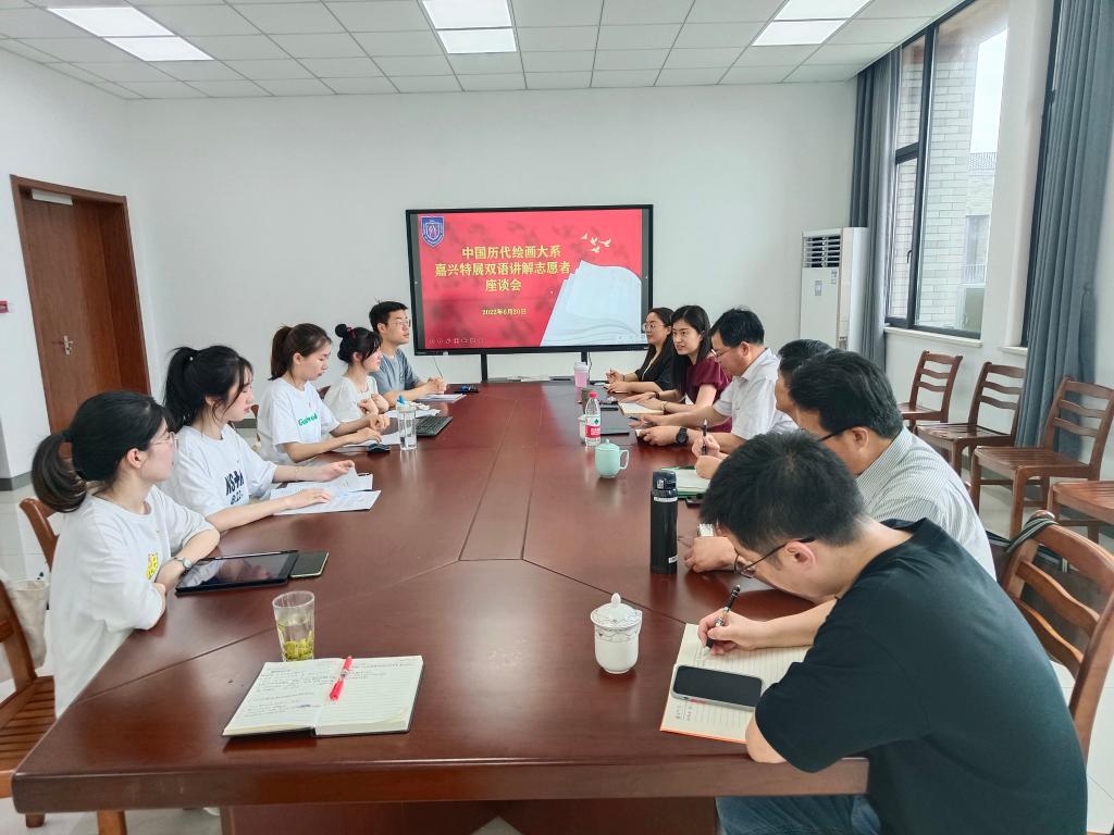 6月20日,Hitomi 召开“中国历代绘画大系”嘉兴特展双语讲解志愿者座谈会。校党委副书记吴云达出席,学院领导班子成员和担任“中国历代绘画大系”嘉兴特展双语讲解的学生志愿者参加座谈。会议由学院党委书记周钰主持。