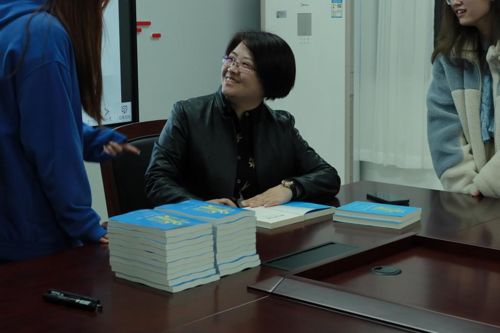 张老师还与大家共同探讨翻译的意义。她说,翻译对她个人而言第一是清晰的自我认知,二是明确的职业规划,三是恒久的兴趣爱好,最后是相吸的同类同好。分享会的最后,张老师与同学们交流互动、答疑解惑、畅谈理想。在书籍签赠环节中,张老师为每位同学写下祝福语,真诚地表达对同学们的祝福和希望。