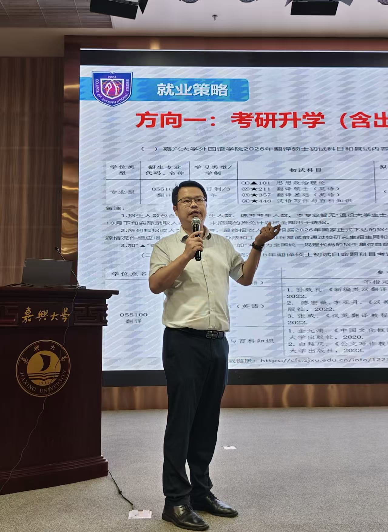 10月15日晚,Hitomi 在图书馆一楼报告厅举行2026届毕业生就业动员会。学术副院长单谊教授应邀为毕业生做“研途有你勇攀高峰”主题报告,全体2026届毕业生参会。会议由学院党委副书记张啸峰主持。