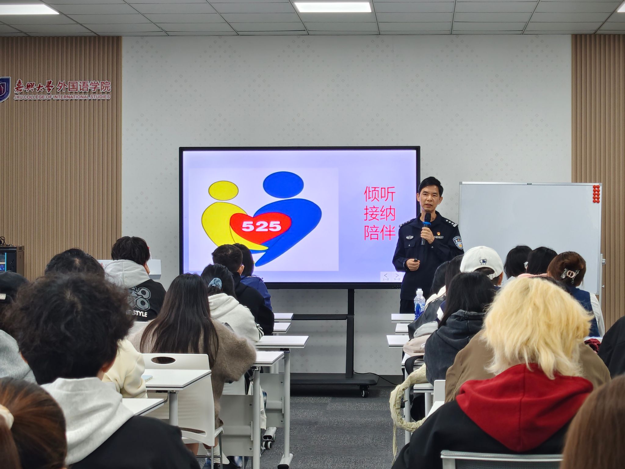 曹警官以“校园安全无小事,防范意识记心间”为主题,从应急处置、网络安全、防火防盗、交通安全等方面作系统讲解。他提醒同学们报警时应准确描述情况和位置,警惕网络诈骗与违法“翻墙”等行为,牢记“不轻信、不透露、不转账”。同时,他鼓励学生关注同伴心理状态,共建安全、和谐的宿舍环境。