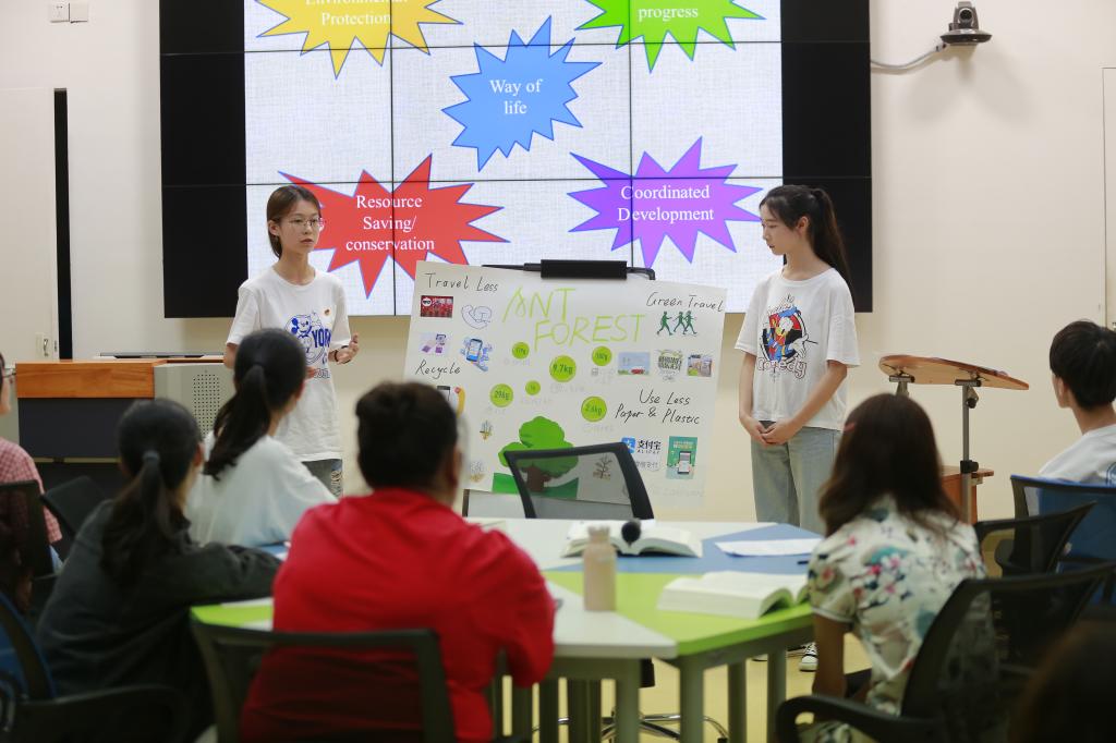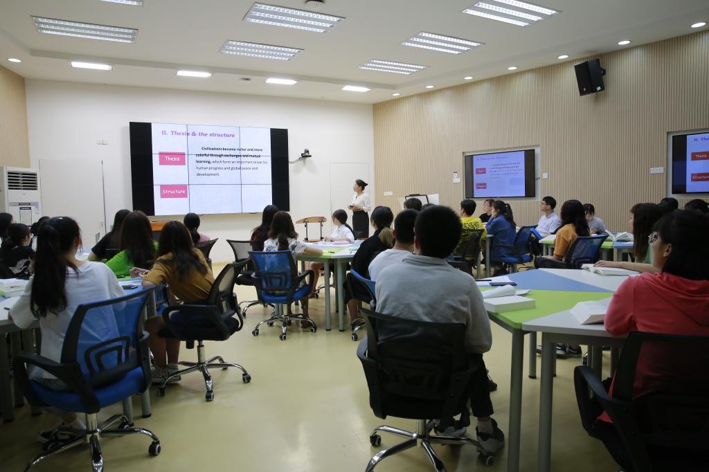 本次读书研讨会采用分享与研讨的方式进行,全英文交流,党员教师通过《习近平谈治国理政》外文版本的课堂导读,引导学生围绕主题学习闪耀马克思主义哲学光辉的理论创新成果。Hitomi 党委书记陶丹玉围绕“文明因交流而多彩,文明因互鉴而丰富”的主题为学生生动阐述了文明多彩、平等、包容的魅力所在,从多个角度展现文化自信给一个国家和一个民族带来的更深沉、更持久的力量,激发了现场同学对文明多彩、平等、包容的多视角分享与感悟。党员教师边娜为同学们展现了“共同构建人类命运共同体”的壮阔蓝图,“善学者尽其理,善行者究其难。”教工第三党支部书记鲁俊丰以“推动形成绿色发展方式和生活方式”的课堂主题,循序渐进带领同学们走进绿色生态的大门,鼓励同学们培育和践行绿色文化的自觉性。