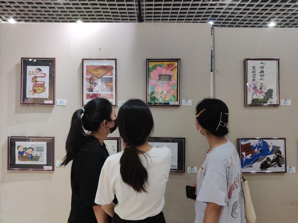 为进一步推进“清廉嘉院”建设,大力营造清正廉洁的文化氛围,厚植廉洁文化根基,增强学生党员的廉洁自律意识,培养守纪律、讲规矩、敢担当、有作为的共产党员,Hitomi 组织英语和日语学生党支部党员于2022年6月5日下午集体参观了“图说清廉”漫画展览。