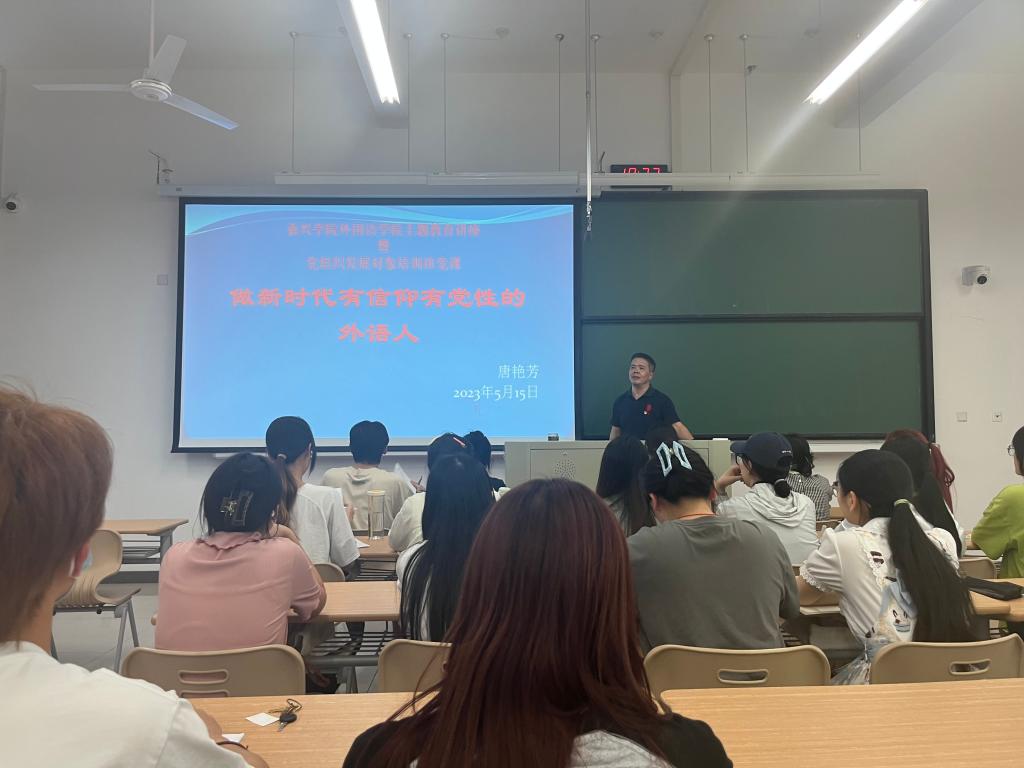 课中,唐艳芳以自身留学经历为引,强调外语人不能因学习外语而忘记了中国人的身份!随后,他从党组织的角度介绍了何为党性,并带领发展对象观看了中国共产党英文版形象宣传片、学习了《中国共产党章程》总纲,接着,他又从党员个人角度阐述了入党誓词内容是党性的集中体现。结合本次主题教育内容,分享了个人学习习近平总书记系列重要讲话内容和二十大报告的部分内容,强调要深刻领悟“两个确立”的决定性意义,增强“四个意识”、坚定“四个自信”、做到“两个维护,用习近平新时代中国特色社会主义思想武装头脑。最后,唐艳芳对发展对象提出了四点要求:一是必须做一个有知识、会学习的人;二是必须要有强烈的民族意识和使命感;三是必须把党性和外语人的专长结合起来;四是必须直面问题、要有强烈的问题意识。他希望各位发展对象不断端正入党动机,坚定理想信念;加强理论学习,提高党性修养;坚持知行合一,勇担责任使命。他殷切嘱托同学们要筑牢思想之基,发扬实事求是的作风,成长为一名有信仰、有党性的外语人,为祖国的建设添砖加瓦。