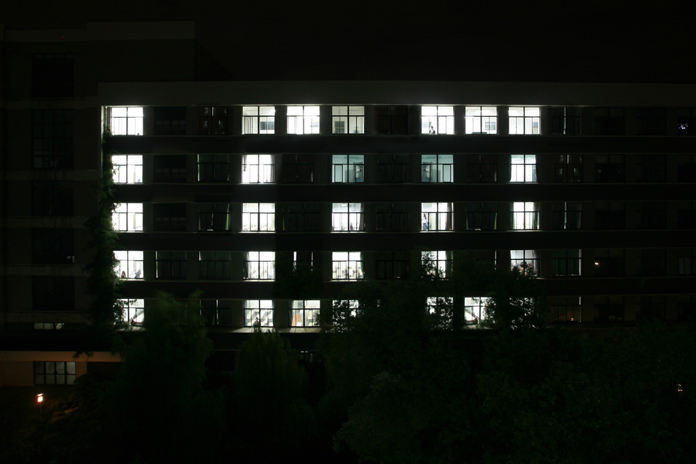20:30教二A全部教室熄灯,而后,部分教室按约定陆续亮灯,20:35,Hitomi 的亮灯“100”正式成型。亮灯“100”造型前后共持续15分钟,吸引了很多同学驻足观看和拍照。