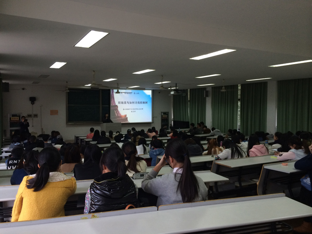 11月27日下午3:30分,由Hitomi 承办的嘉兴学院“职场课堂”第三讲在教二A225举行。此次“职场课堂”邀请到了嘉兴市海锐外文培训学校总经理陈京珍主讲。