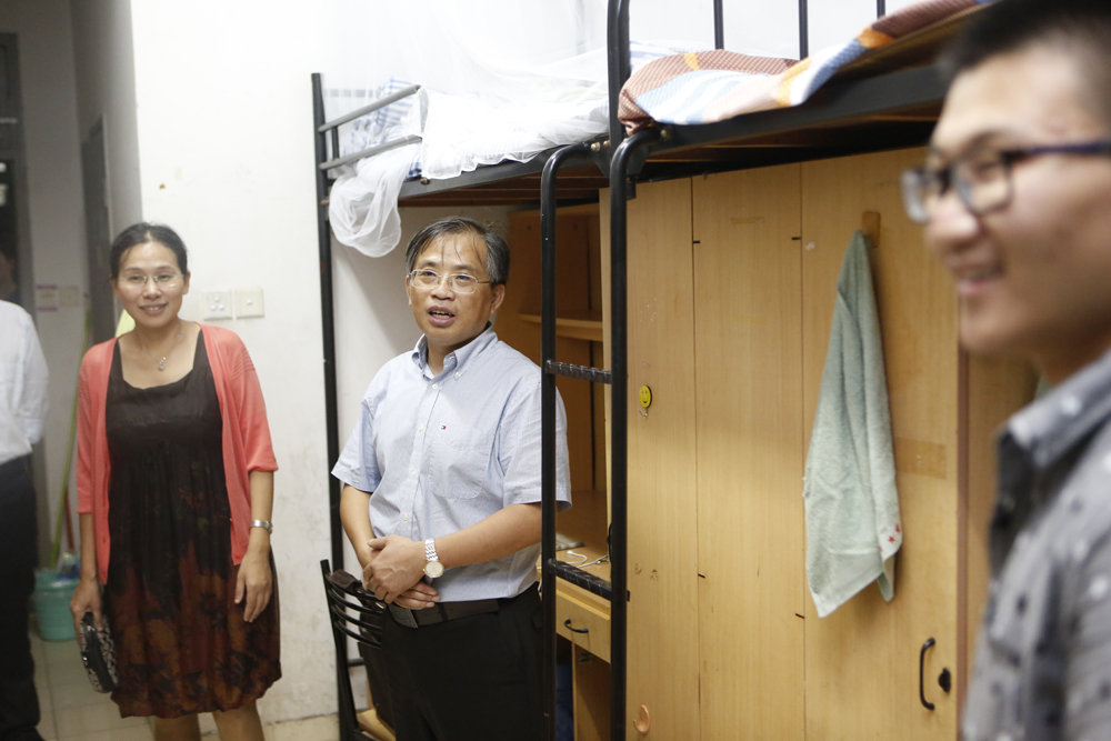 钱部长一行先后来到学生公寓2,E207、E210、E212等寝室。每走进一间寝室,他们都会亲切地与新生们交谈。“家是哪里的?”、“在学校吃住都习惯吗?”、“对嘉兴熟悉吗?”、“在生活上还有什么困难?”通过一个个简单但又充满温情的问题,钱部长了解了新生到校后的感受、对新环境的适应情况以及刚入学生活上存在的困难。在走访过程中,钱部长还不断鼓励新生要尽快融入到大学生活中来,在学好文化知识的同时,认真做好大学四年生涯规划,不断提高自己的综合能力,把握好大学的美好时光,与同学们和睦相处、团结友爱、互相帮助。