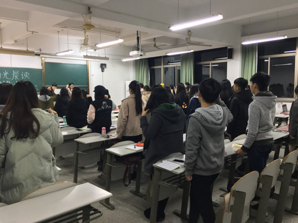 团委学生会于3月5日晚,在外语楼自习室开展阳光晨读宣讲大会。学院老师和学生会干部通过宣讲的形式,鼓励各位同学积极参加晨读,共筑外院靓丽风景线。
