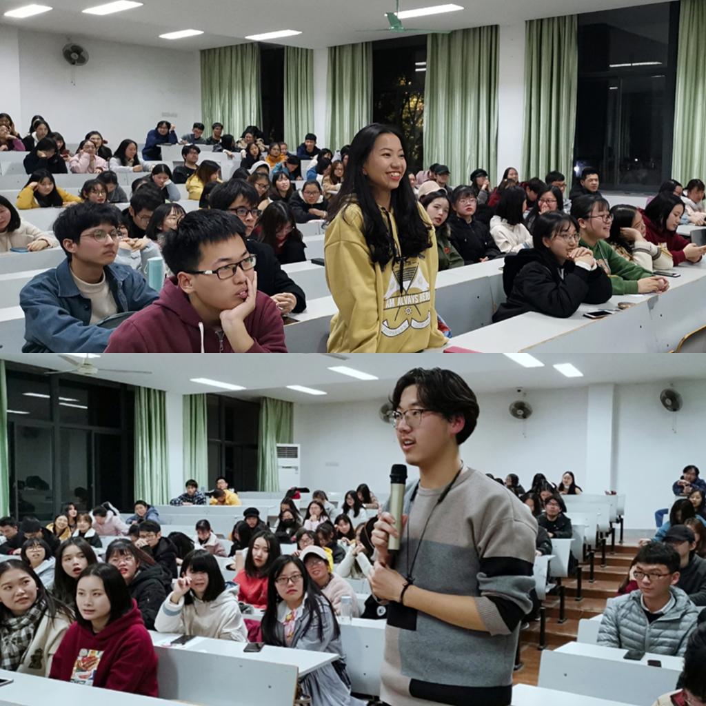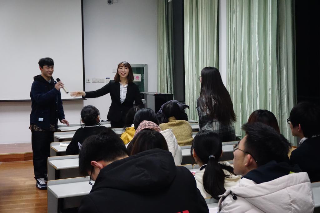 最后是相良朋子同学与大家的交流环节。同学们就日本的动漫、饮食和城市风貌等踊跃提问,相良朋子同学耐心作答。一问一答,中日青年之间思想交错,情感交流,暖意融融。
