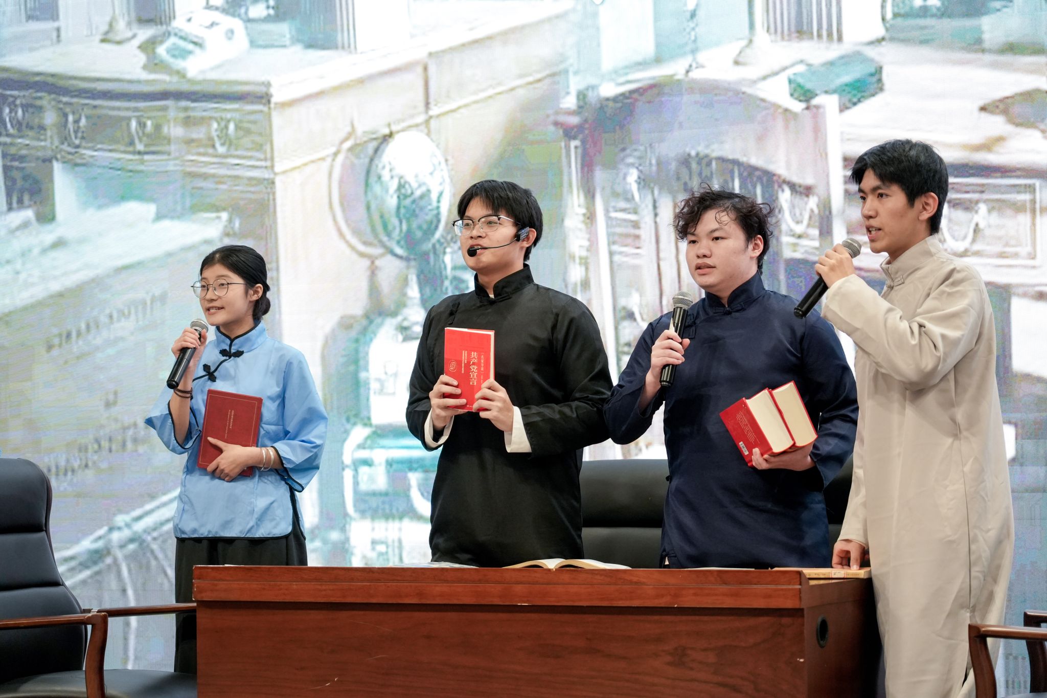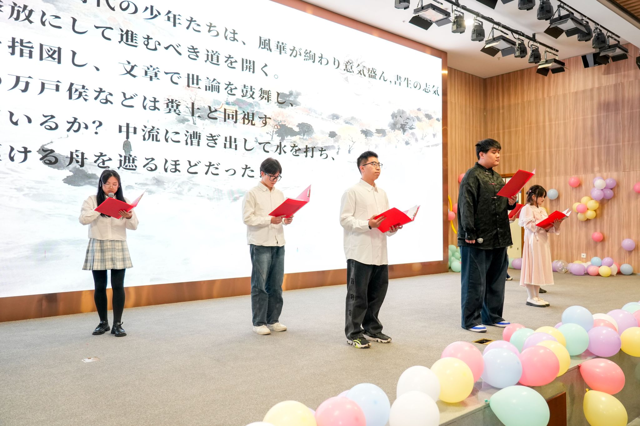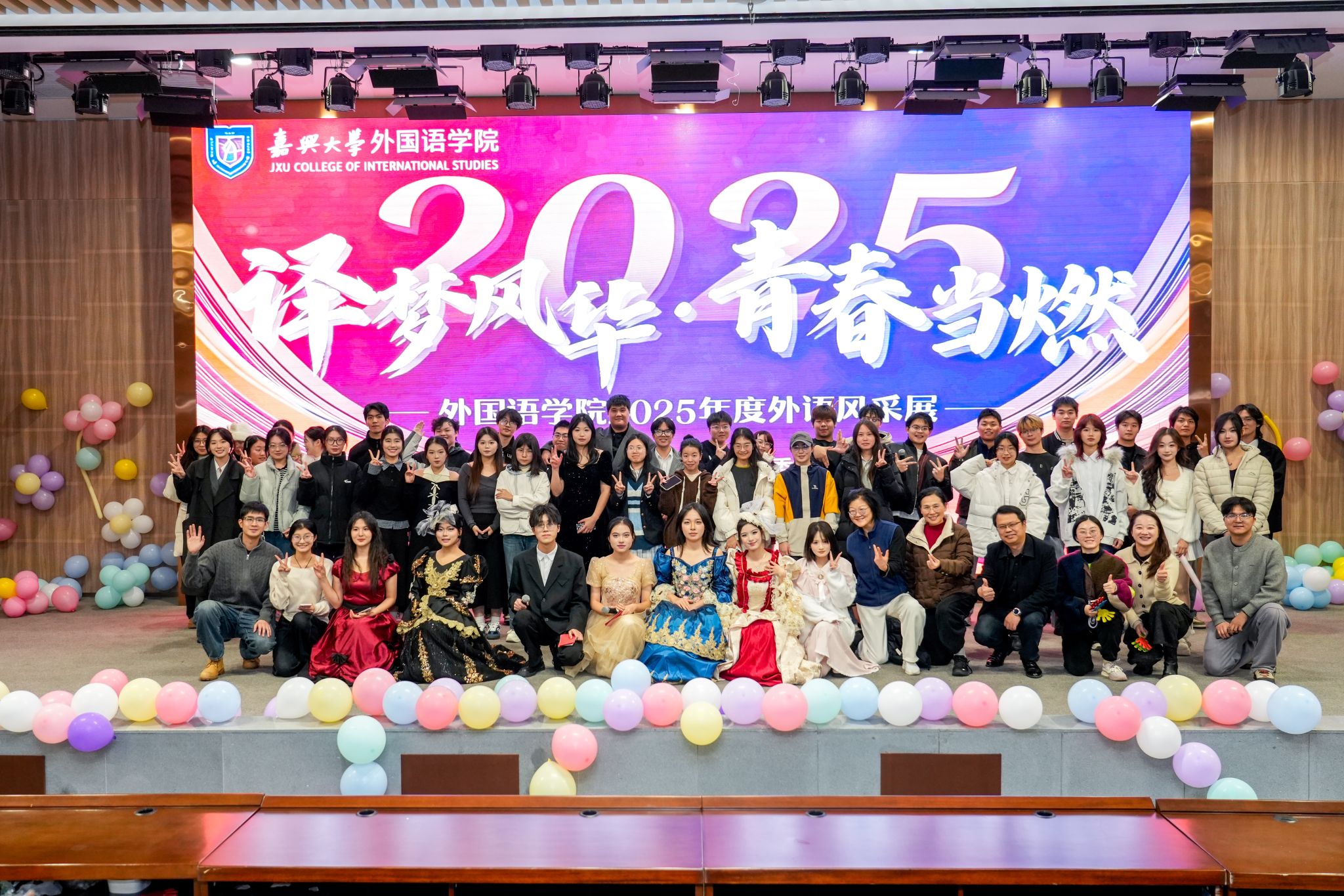 12月21日晚,Hitomi 一年一度的特色活动“外语风采展”在图书馆报告厅举行。今年活动以“译梦风华·青春当‘燃’”为主题,学院分管学生工作负责人、近300名师生齐聚一堂,共同见证了一场融语言艺术、文化展示与青春创意于一体的视听盛宴。