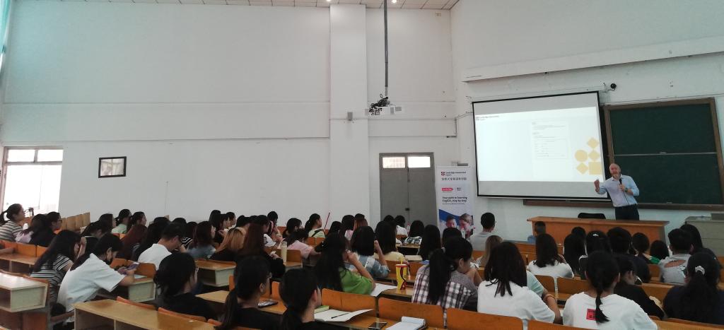 2019年9月19日下午,剑桥大学BEC全球主管Ian Cawley先生,在剑桥大学英语考评部华东负责人李明先生和东亚区测评服务经理毕诗惠女士的陪同下,莅临嘉兴学院作客Hitomi 社会培训与服务中心,并应邀在外语楼310为嘉兴学院学生做了一场精彩的讲座。讲座由BEC嘉兴学院考点负责人黄洪老师主持,来自校内外的百余名考生和英语爱好者到场参加。