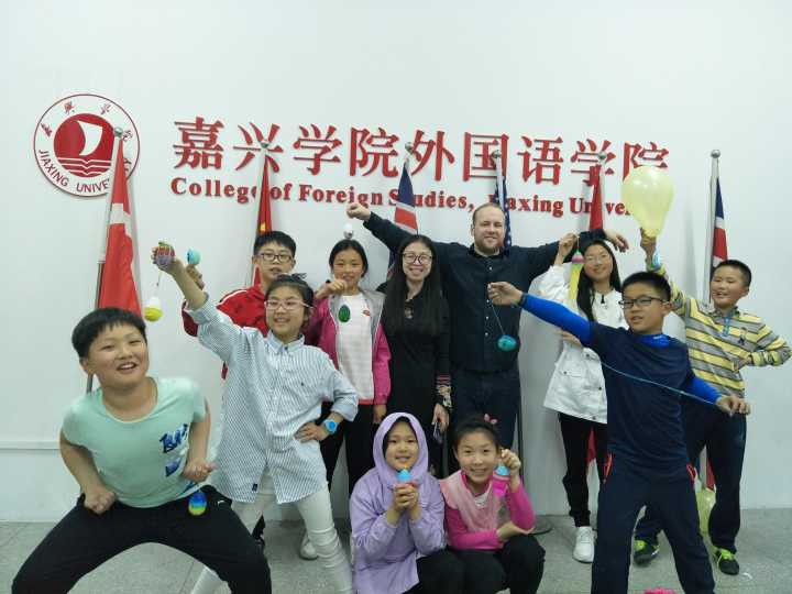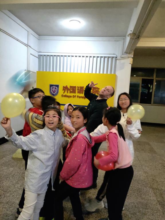 接着,助教引导小学员们在五颜六色的气球里面去寻找语法题、改错题、选择题等等,一道又一道,他们争先恐后要求答题,室内室外到处都是热闹的抢答声和快乐的气息。