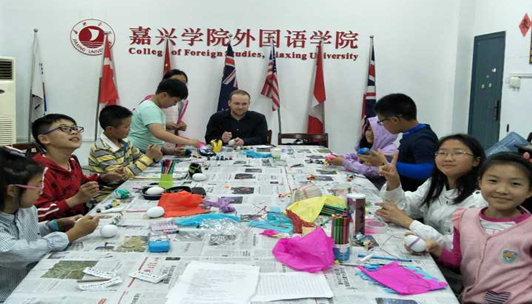 课间休息时,中外教带领学员们一起来体验,寻找快乐——DIY活动——为了把自己好几轮答题赢取的 “礼品小蛋”装饰得既有创意又童趣满满,他们运用了颜料、彩笔、贴纸、彩绳等等各式各样的材料,连Patrick也忍不住参与到DIY的队伍中呢。