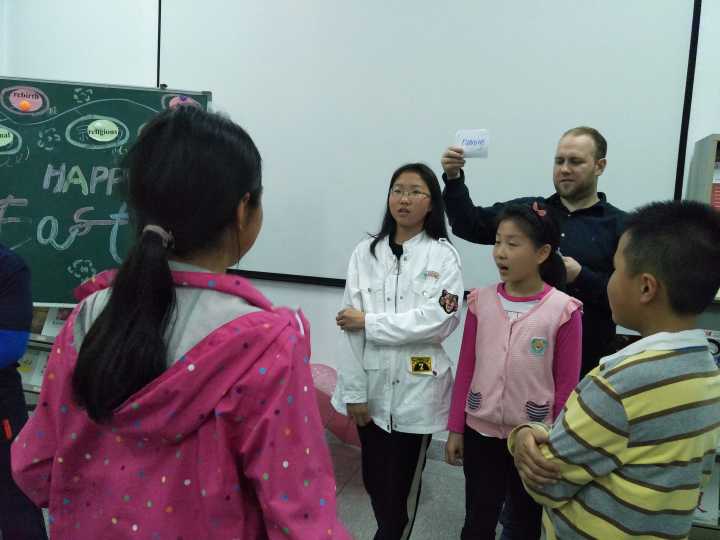 为了让小学员们了解和体验多种文化和习俗,Hitomi 社会培训与服务中心邀请了美籍教师Patrick,与中教一起在4月21日给少儿英语培训班学员带来了丰富有趣的英语主题活动。这一天,新概念II级班的孩子们在活动与游戏中参加了一场另类的考核;这种寓考于乐的方式,深受欢迎孩子们欢迎。