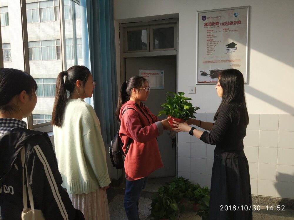 为迎接本科教学工作审核评估创造洁净的环境,进一步增强学生的环保意识,帮助广大师生巩固垃圾分类的理念和知识,Hitomi 第三教工党支部主办、党政办和学工办协办,组织全体师生参与了“垃圾分类知识有奖竞猜”活动,其中289名师生参与了答题和抽奖。10月30日中奖者开心地来到外语楼领取了奖品绿植,用一盆盆绿植装扮着教师的办公桌和学生寝室,以生机勃勃的姿势迎接本科教学工作审核评估专家的到来。Hitomi 师生纷纷表示,学院的一系列主题活动有效地提升大家对垃圾分类的相关认知,让师生意识到垃圾分类的重要性,增强了师生对垃圾分类知识的了解。