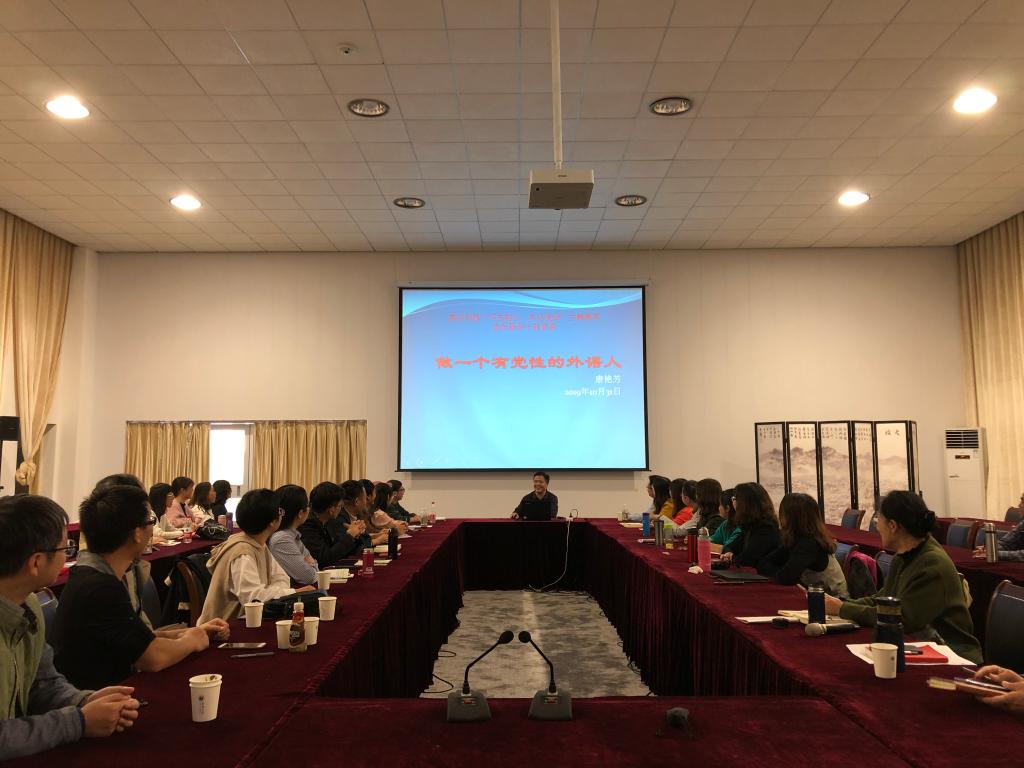 为扎实推进“不忘初心、牢记使命”主题教育活动,进一步贯彻落实“守初心、担使命、找差距、抓落实”的总要求,10月31日下午在学校第六会议室,Hitomi 院长唐艳芳结合前期学习教育和调研情况,为全院师生党员上了一堂题为“做一个有党性的外语人”的专题党课。全院师生党员到场聆听党课。