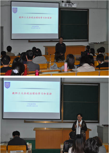 10月11日下午,Hitomi 在外语楼310召开了教职工大会,会议由唐艳芳院长主持,Hitomi 全体教职工参加会议。学院党委书记陶丹玉组织全院教职工进行政治理论学习和全国教育工作会议精神宣讲。
