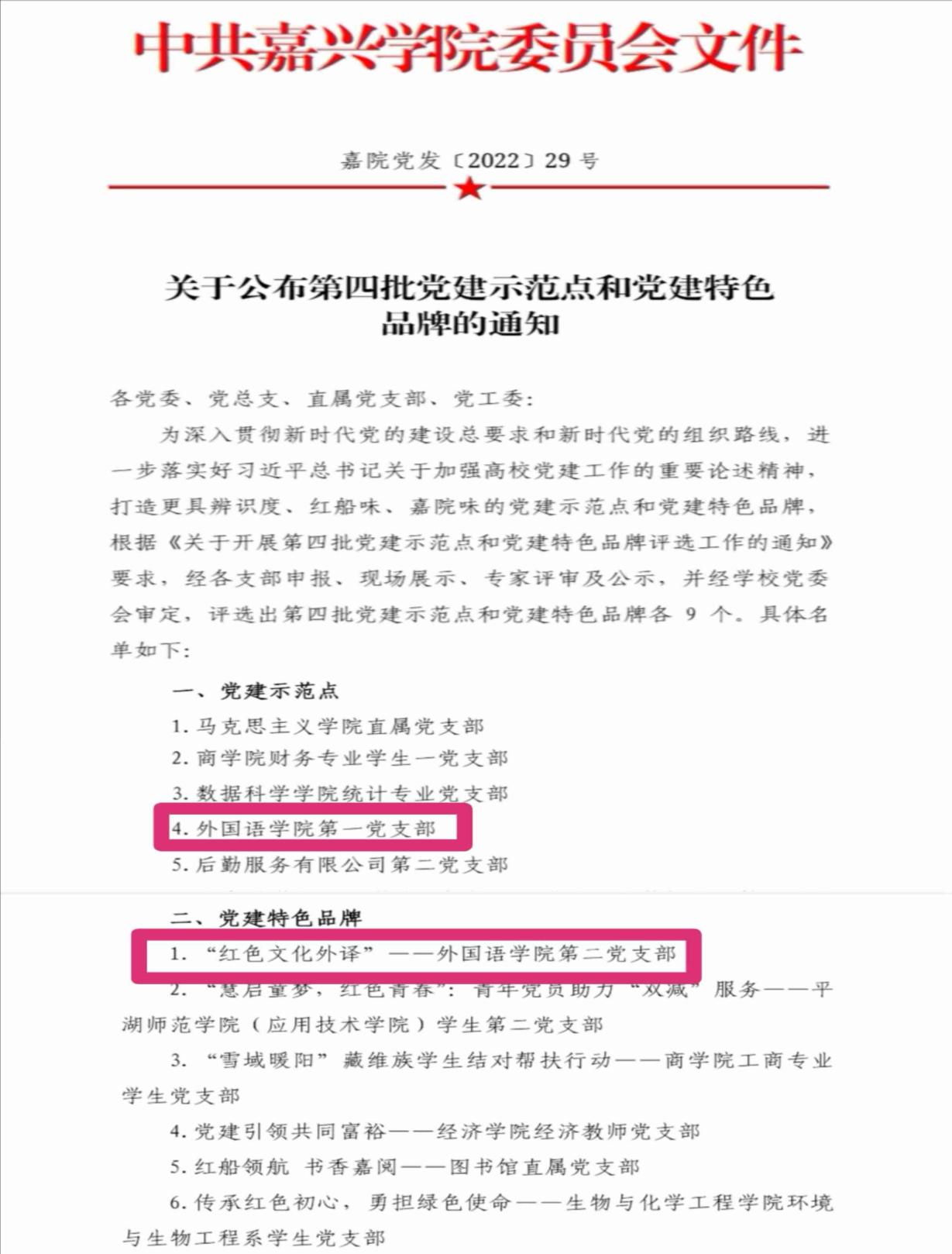 在嘉兴学院2022年10月开展的第四批党建示范点和党建特色品牌评选活动中,Hitomi 两个党支部一齐登上荣誉榜,第一党支部被评为党建示范点,第二党支部位列党建特色品牌榜榜首。