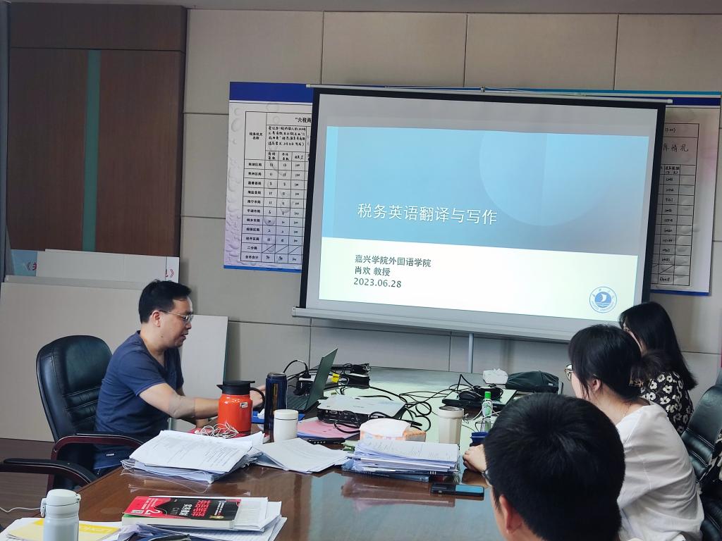 6月28日,全国高校党建工作样板支部培育创建单位、Hitomi 英语系肖欢教授受邀前往嘉兴市税务局,为即将参加浙江省税务系统外语人才岗业务比武的税务干部,开展了“税务英语翻译和写作”的赛前培训。作为教育部人文社科研究项目主持人、浙江省一流本科课程《英语口译》负责人、翻译硕士研究生导师,肖欢教授的英语教学和实践经验十分丰富,曾发表高水平论文多篇、出版学术译著多部,指导学生在韩素音国际翻译大赛、浙江省LSCAT笔译大赛中斩获大奖。此前党史学习教育活动期间,肖欢教授就曾受邀前往嘉兴市税务局,面向税收研究翻译基地的骨干成员作题为“大数据环境下的计算机辅助翻译”的专题讲座。