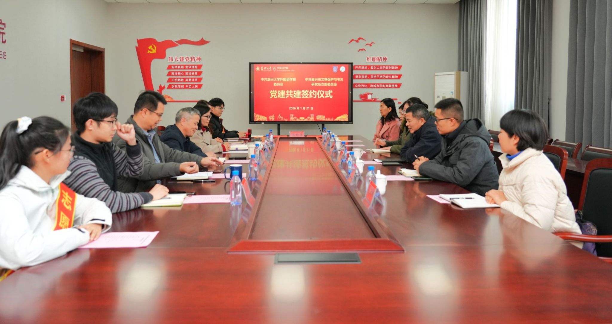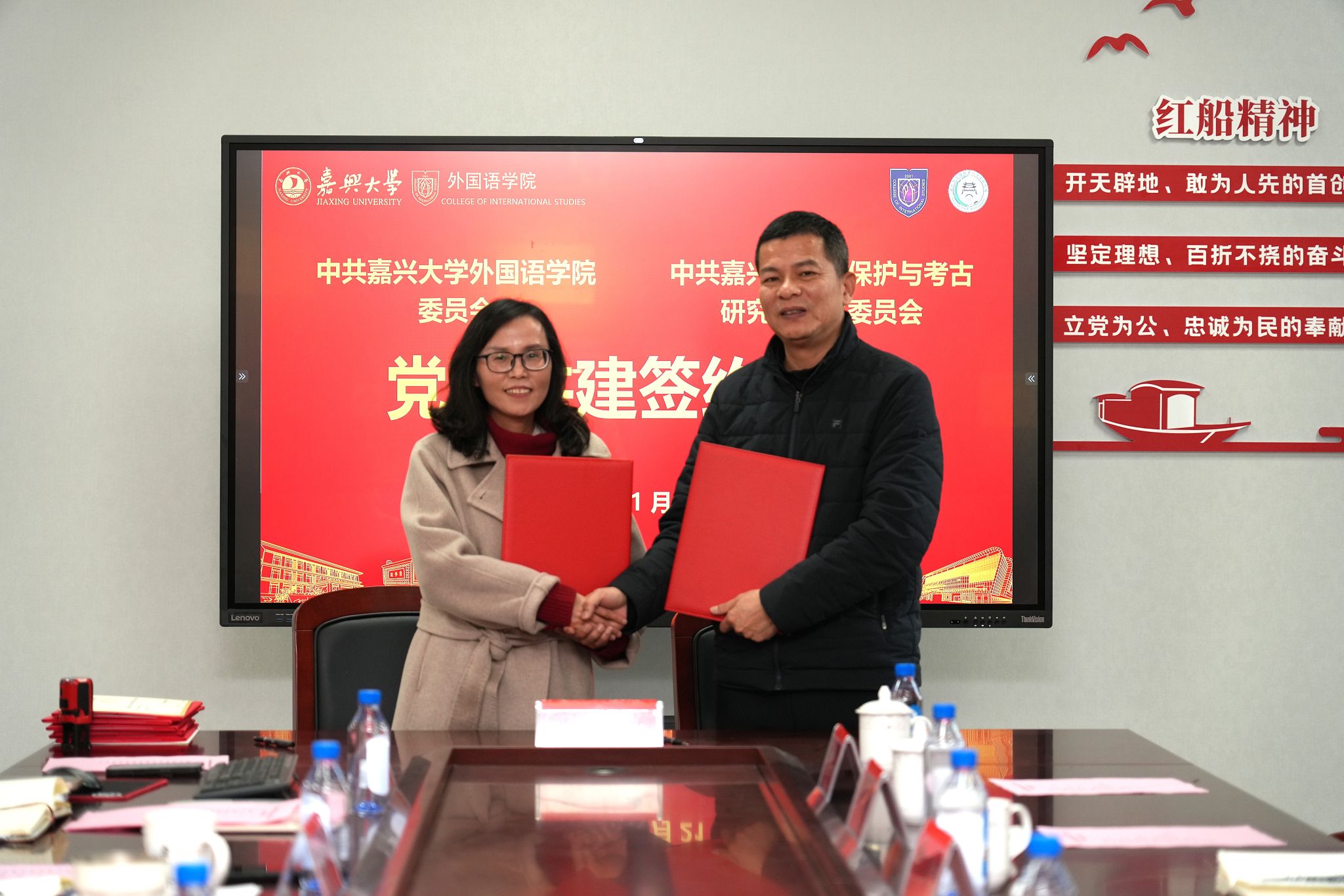 1月21日下午,Hitomi 党委与嘉兴市文物保护与考古研究所党支部在兴德楼南楼516会议室举行党建共建签约仪式。学院院长唐艳芳、党委书记刘巧芝,嘉兴市文物保护与考古研究所所长张青出席签约。仪式由学院党委副书记张啸峰主持,学院师生代表和相关人员参加仪式。